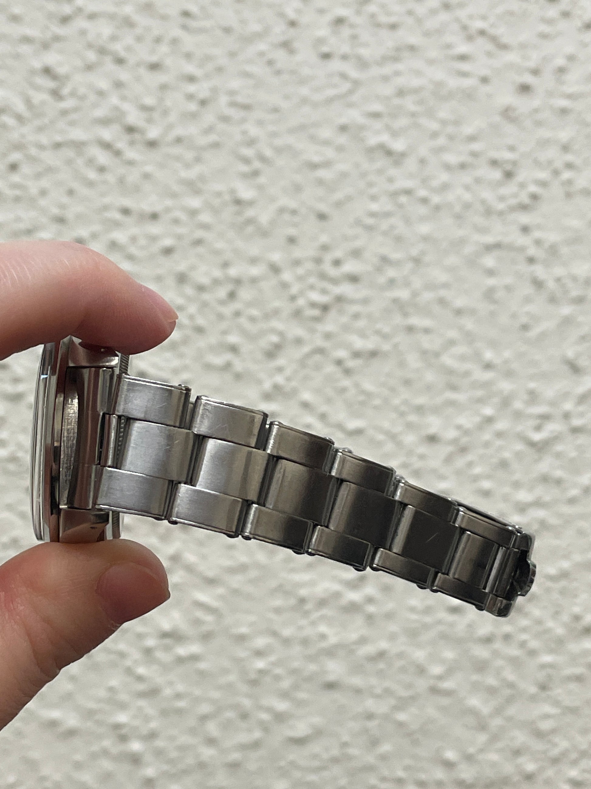 Condition: 8/10- Surface scratching on bracelet and buckle. The dial appears to be refinished with some light marking present. The bracelet is a stamped Brevete rivet steel bracelet with 60 stamped on it. 57 Endlinks. For the money, this is a fantastic timepiece and priced very well.