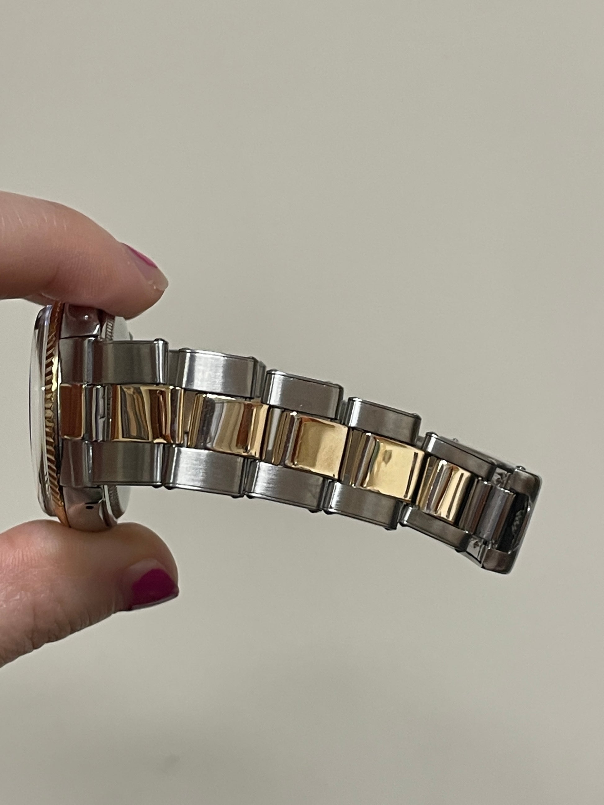 Condition: 9/10- Watch has been polished. Bracelet has light stretch. Overall very nice. Great two-tone timepiece for the price point.