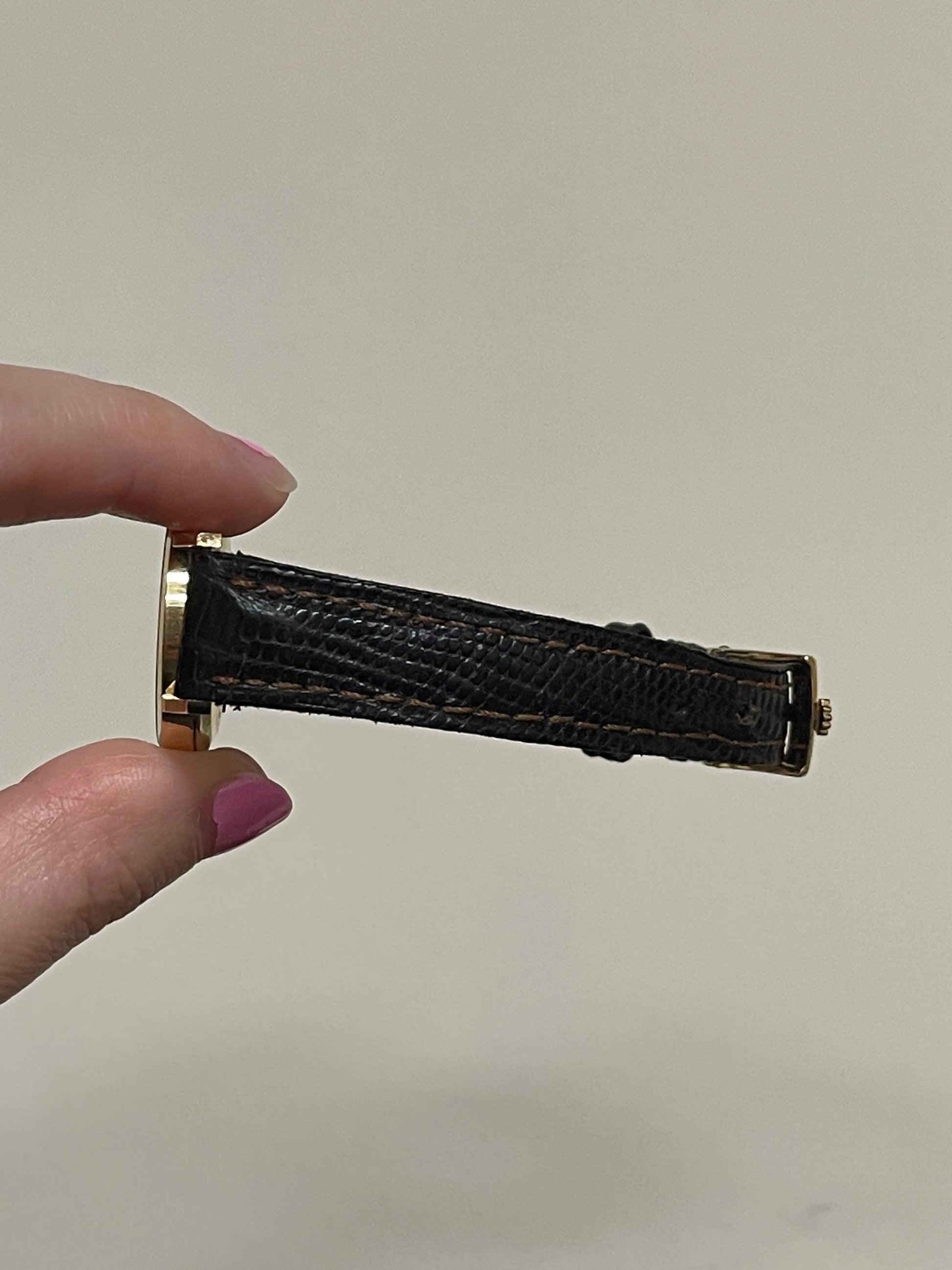 Condition: 9/10- Signs of use on buckle. Overall very nice! Vintage ladies timepiece solid 18kt gold.