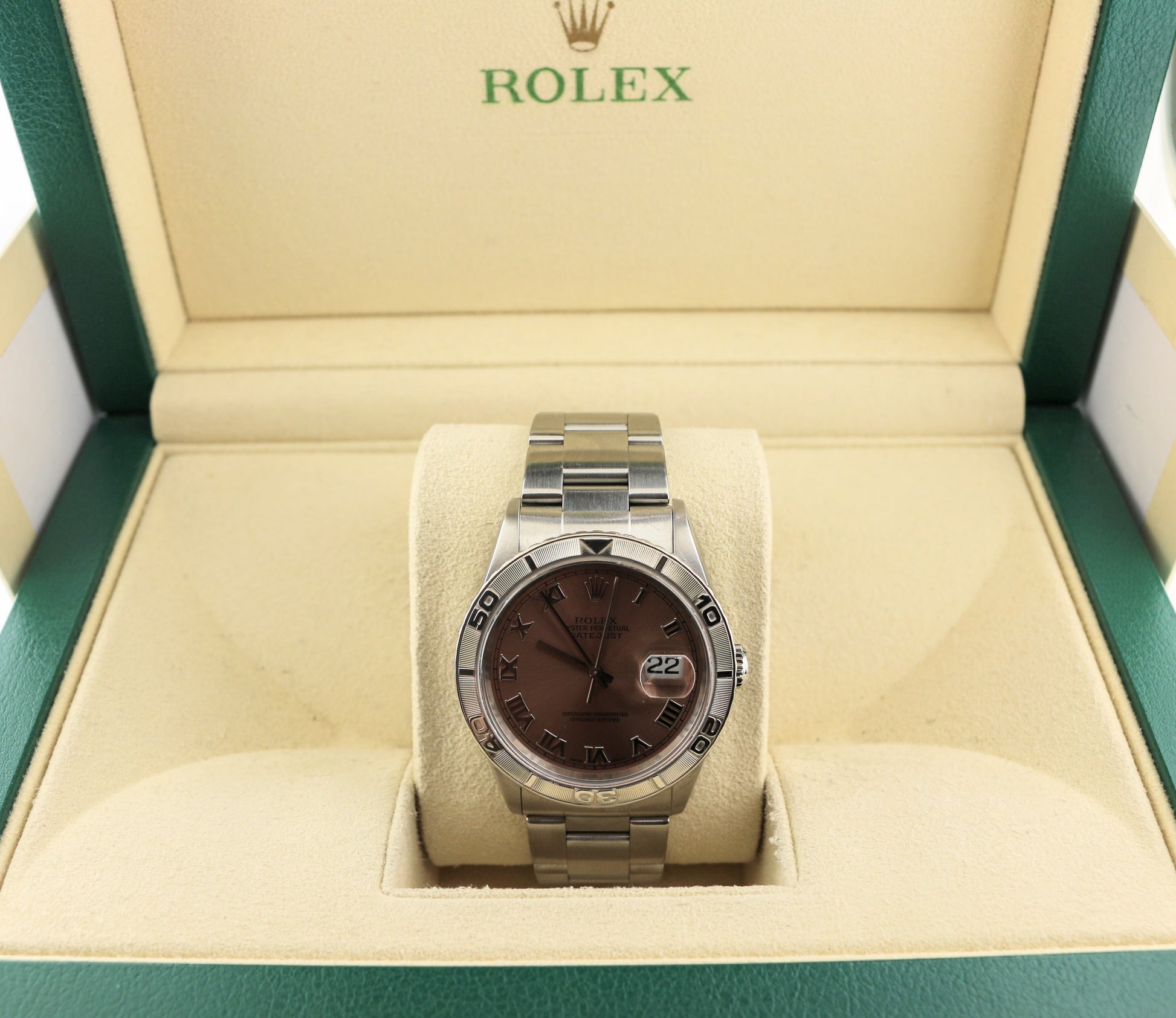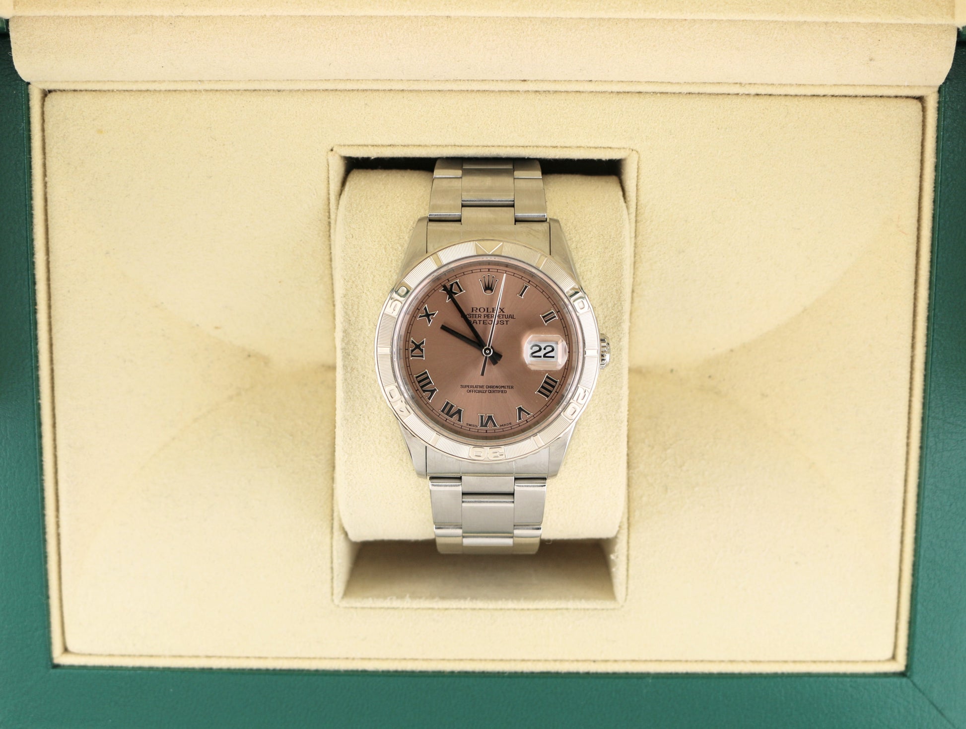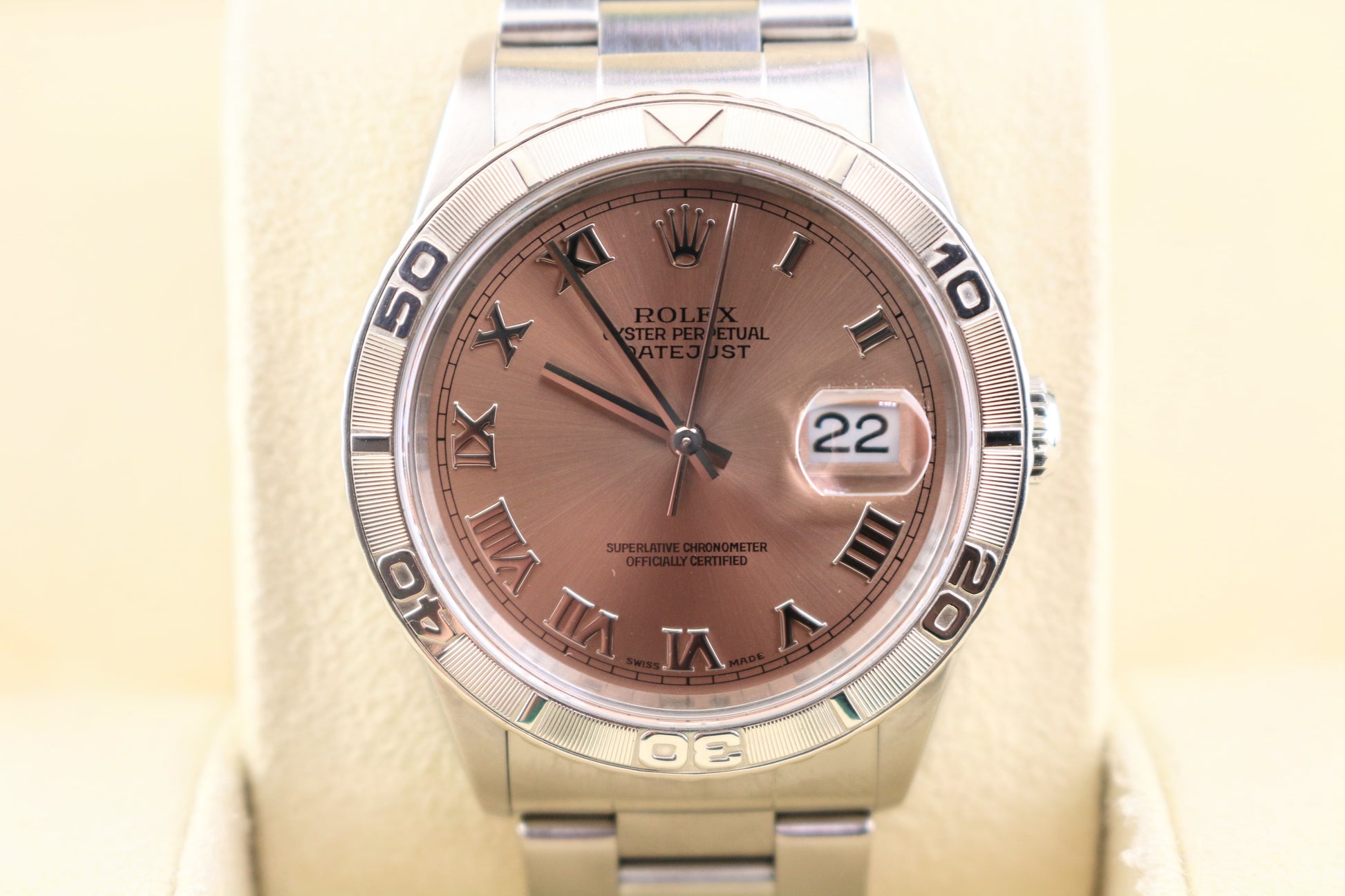 1999 Rolex Datejust Turnograph 16264 Pink Salmon Roman Dial SS Oyster 36mm