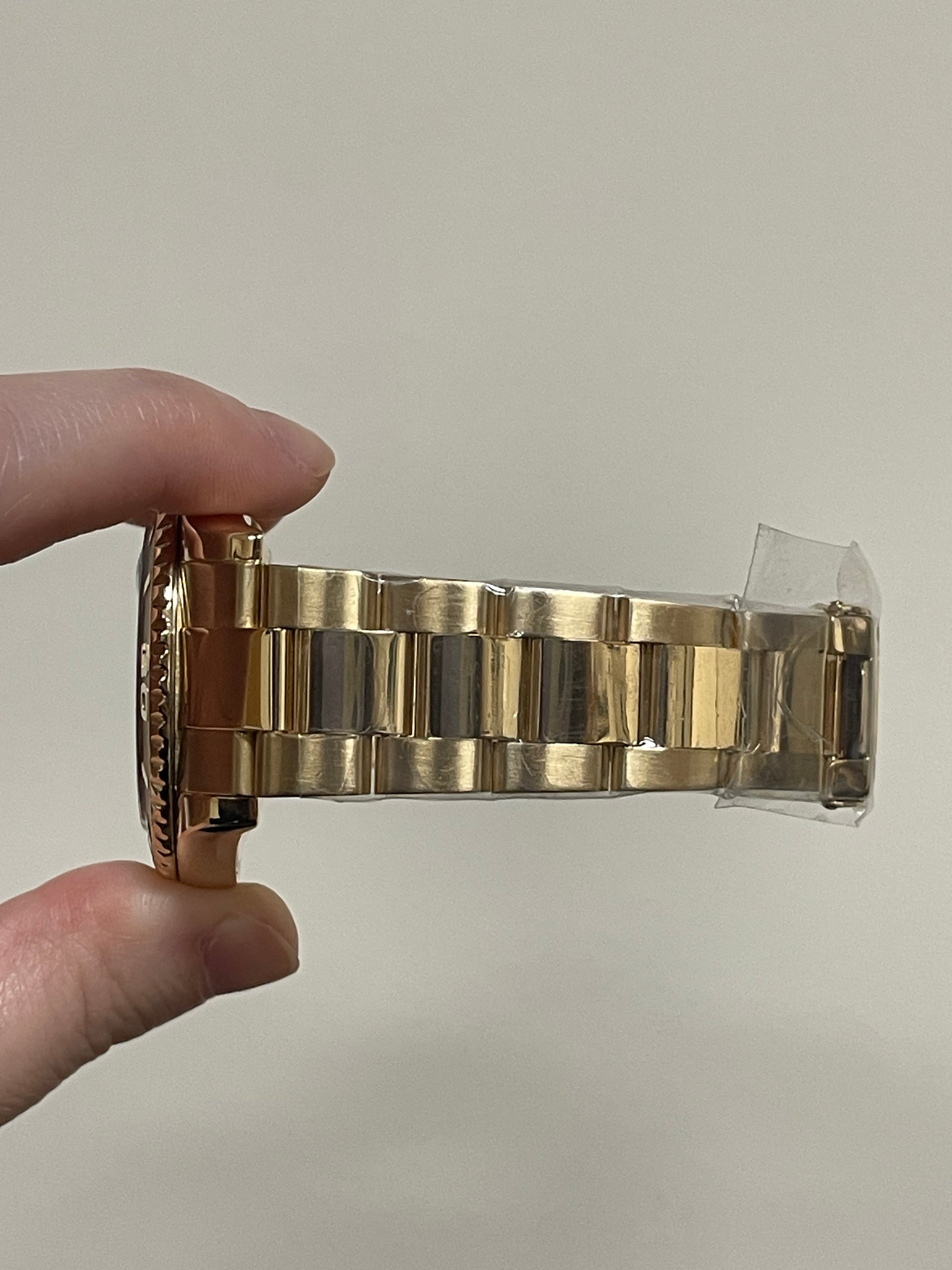 Condition: 9/10- Watch has been polished. Very nice overall! Sharp condition with no stretch, Screw style bracelet total weight 172 grams 18kt.