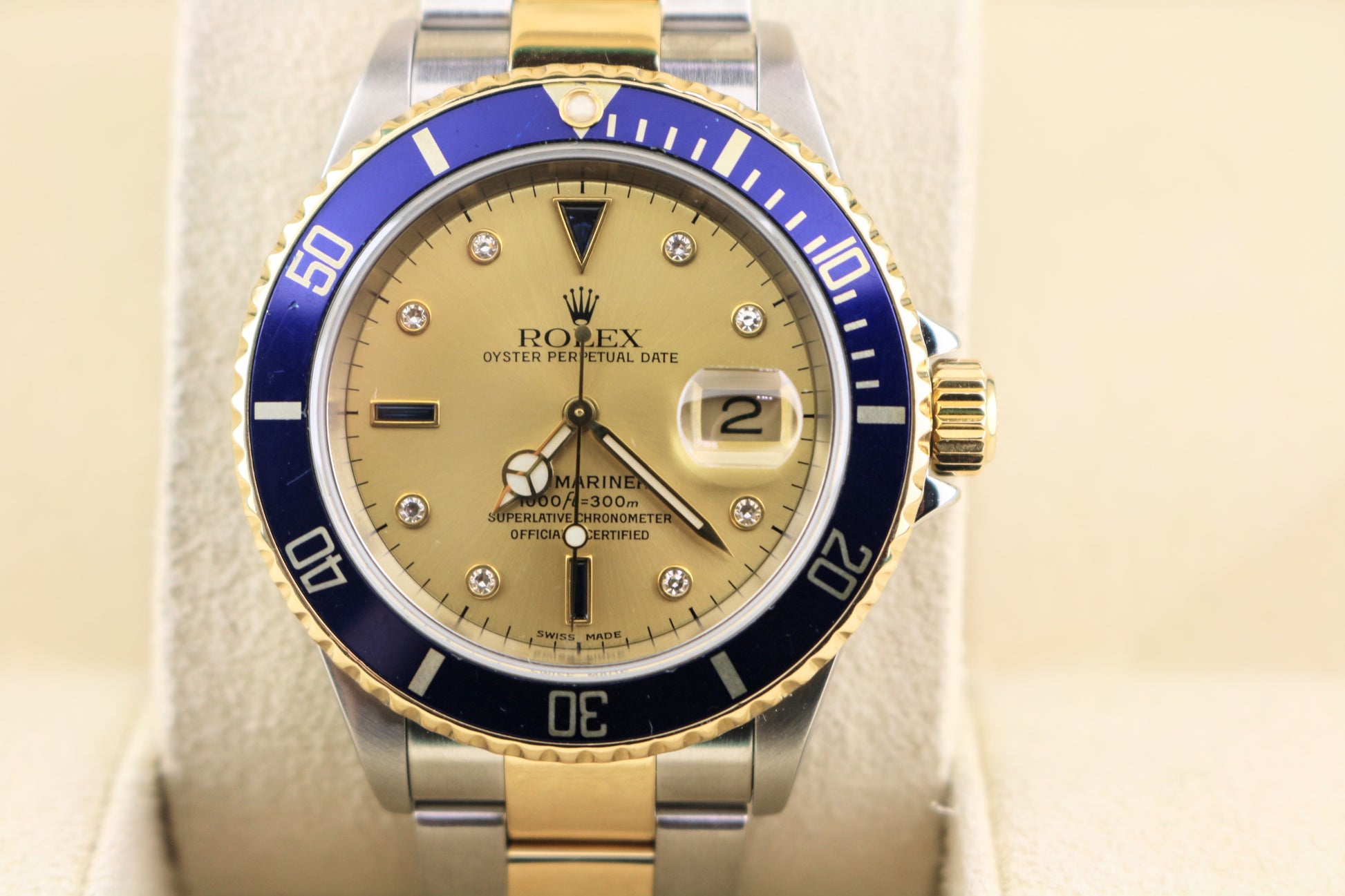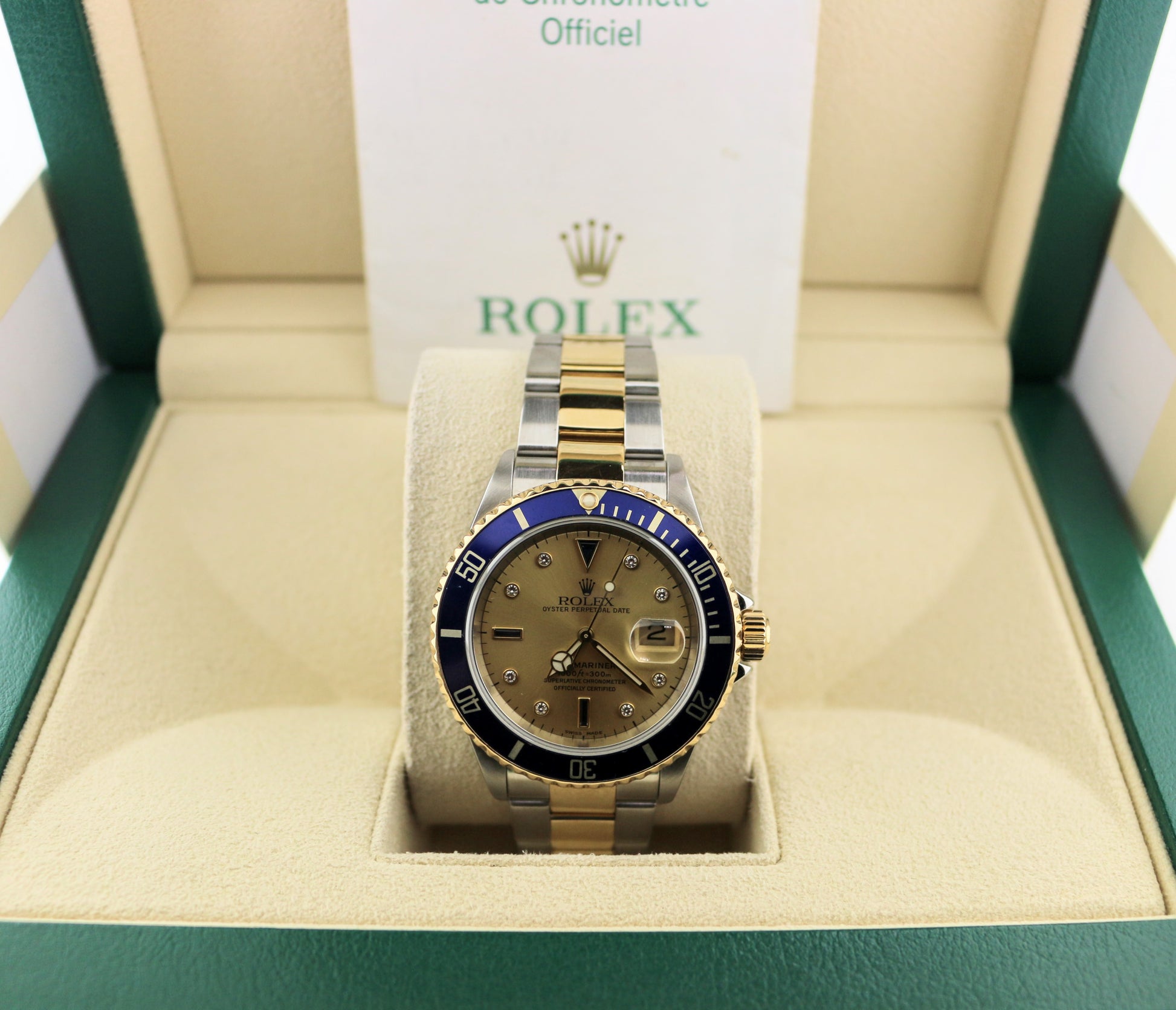 2004 Rolex Submariner 16613 Champagne Serti Diamond TT Oyster With Papers 40mm