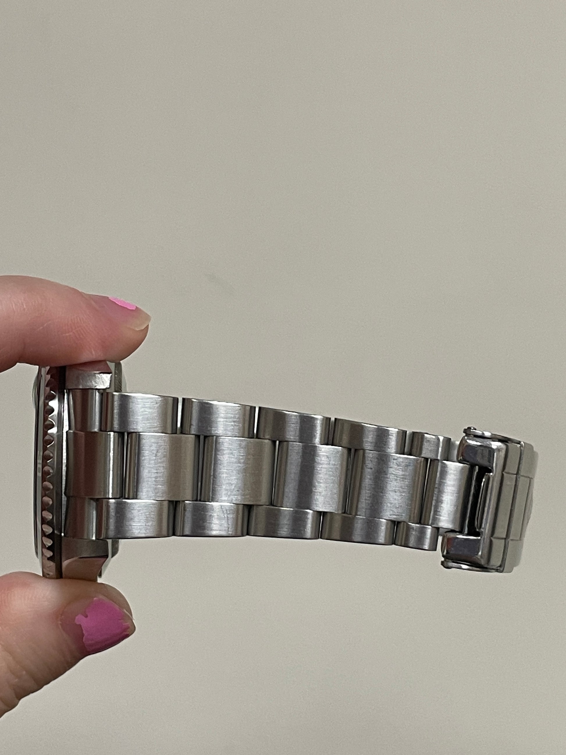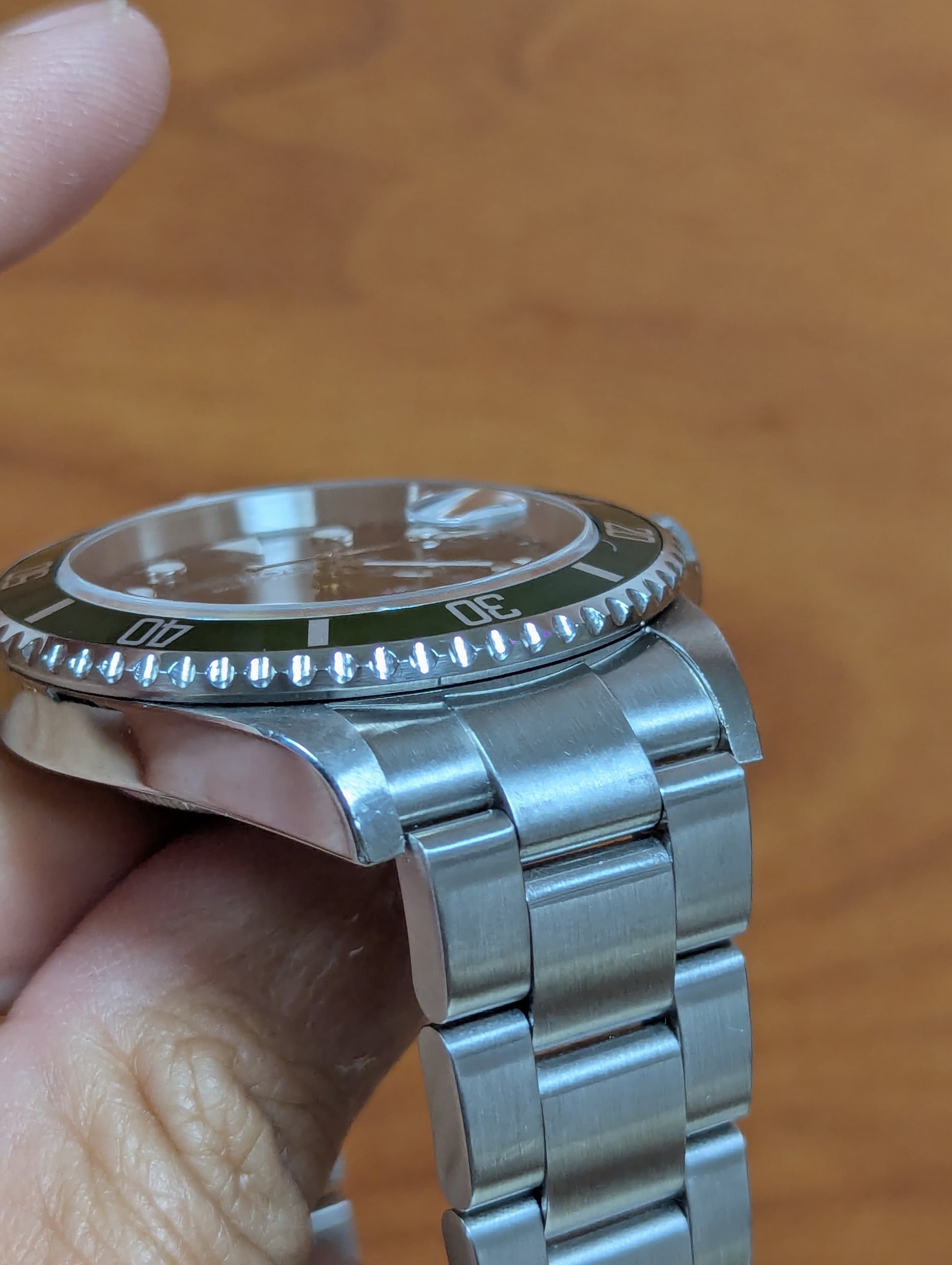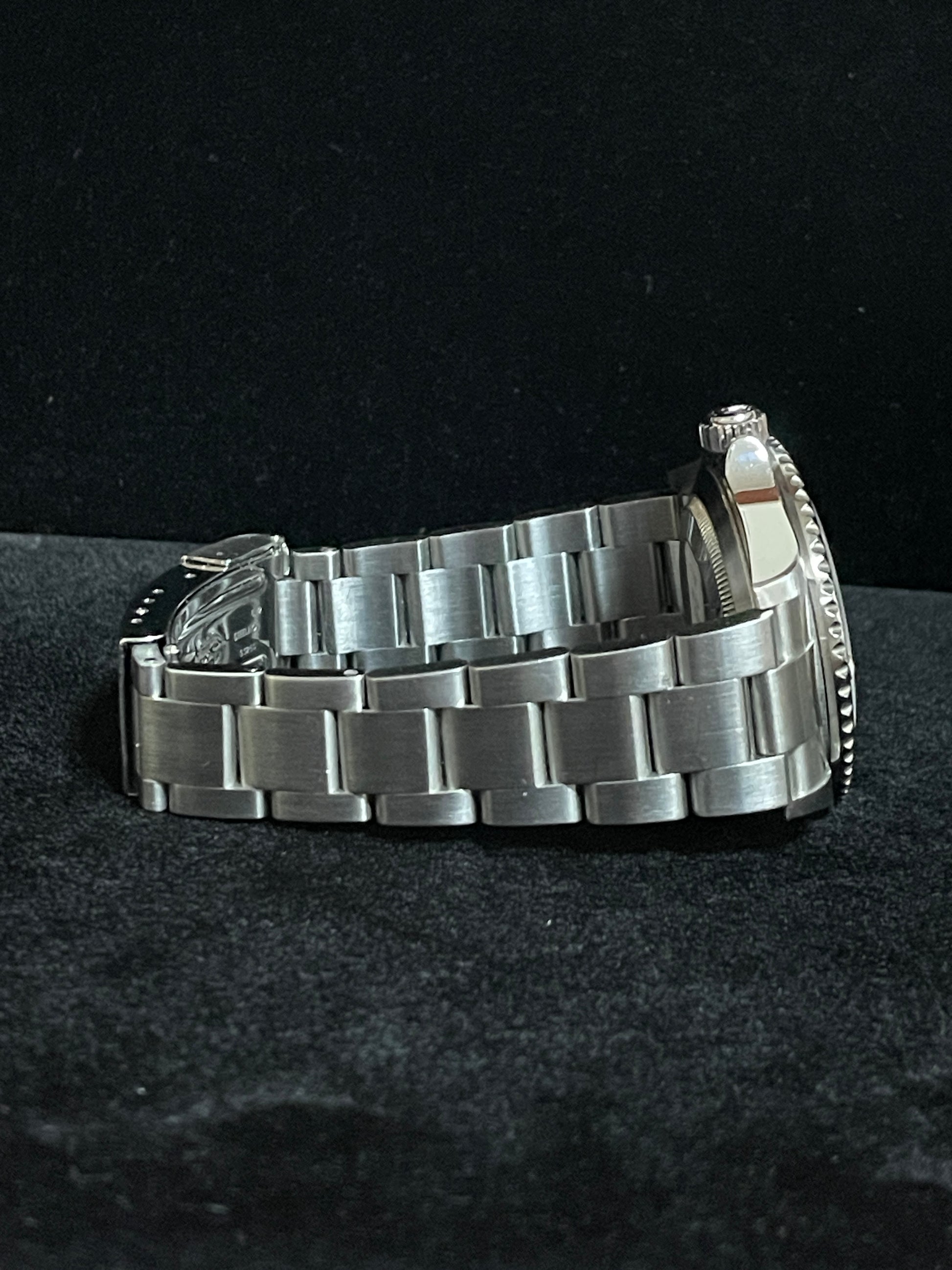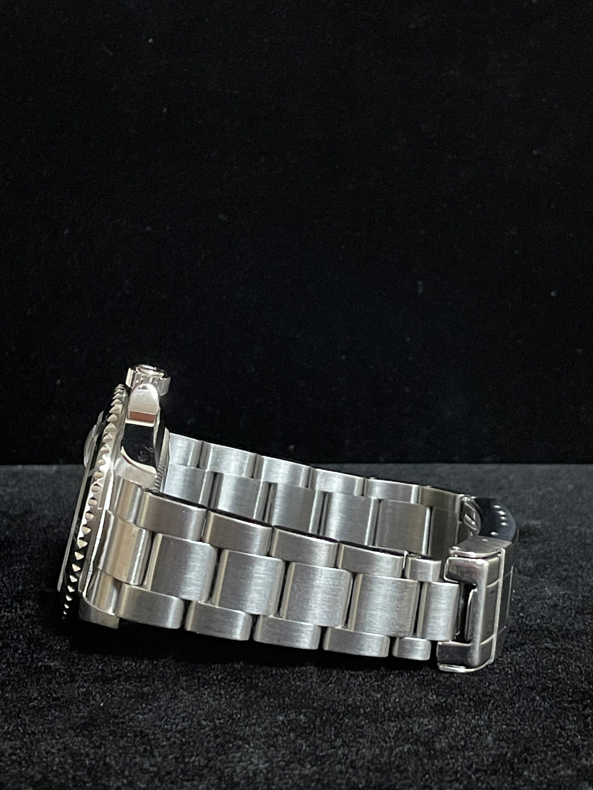 Condition: 9/10- Scratches on bezel Insert, shows light signs of use on bracelet and buckle. This is a rare early serial flat 4 Kermit Submariner he first series of production, the case is razor sharp and appears to be in unpolished condition. Fantastic collectors' timepiece.