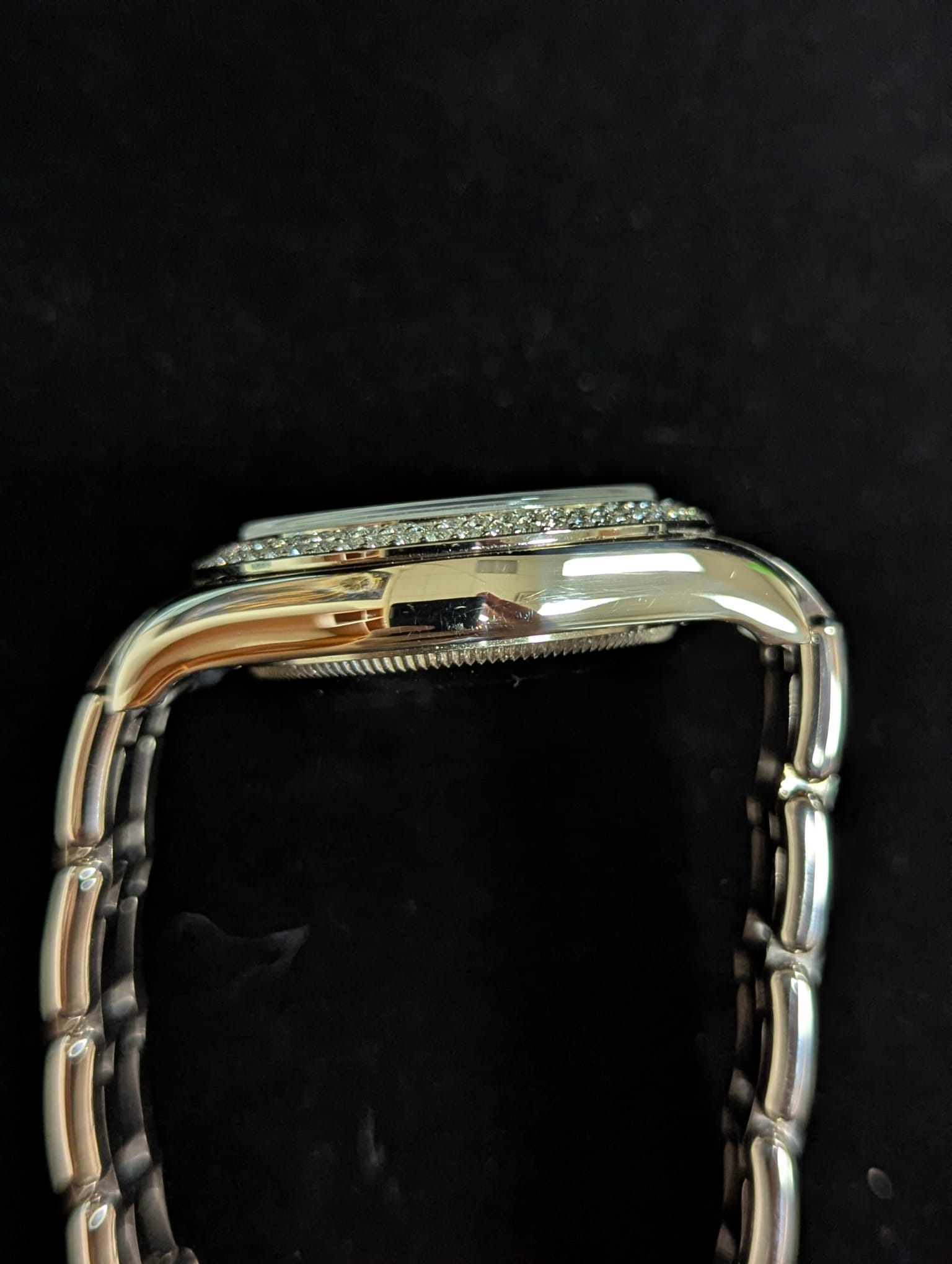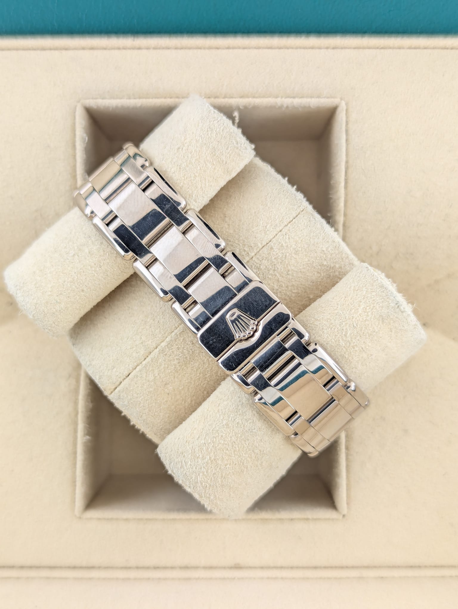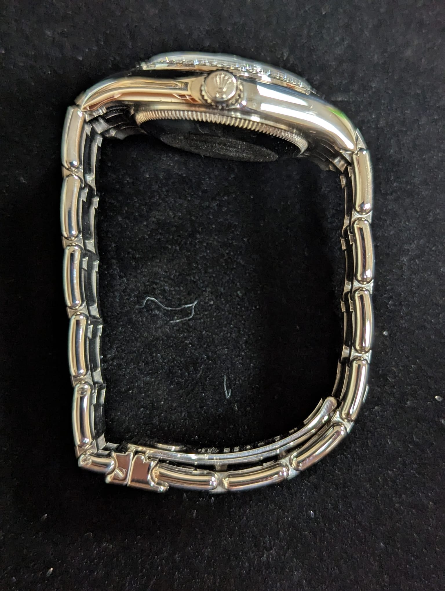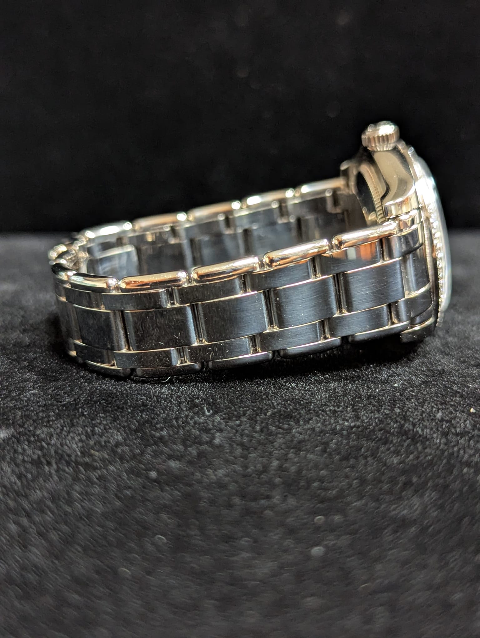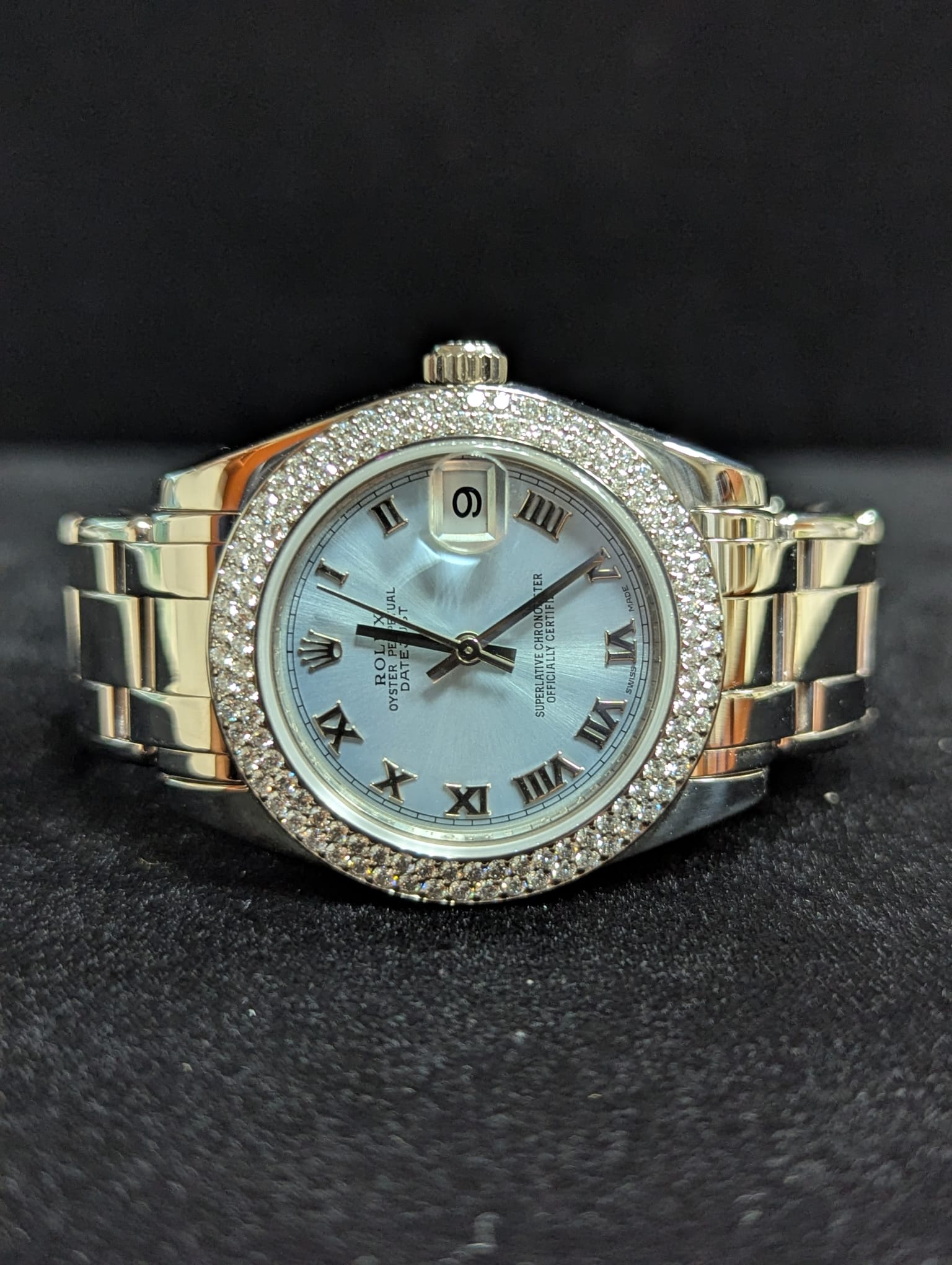 Condition: 9/10- Retail Ready! Factory 2 row diamond bezel. 137 grams white gold 18kt. Stunning ladies timepiece all factory original, the dial comes from a platinum masterpiece and was installed by an authorized dealer, all parts are factory original.