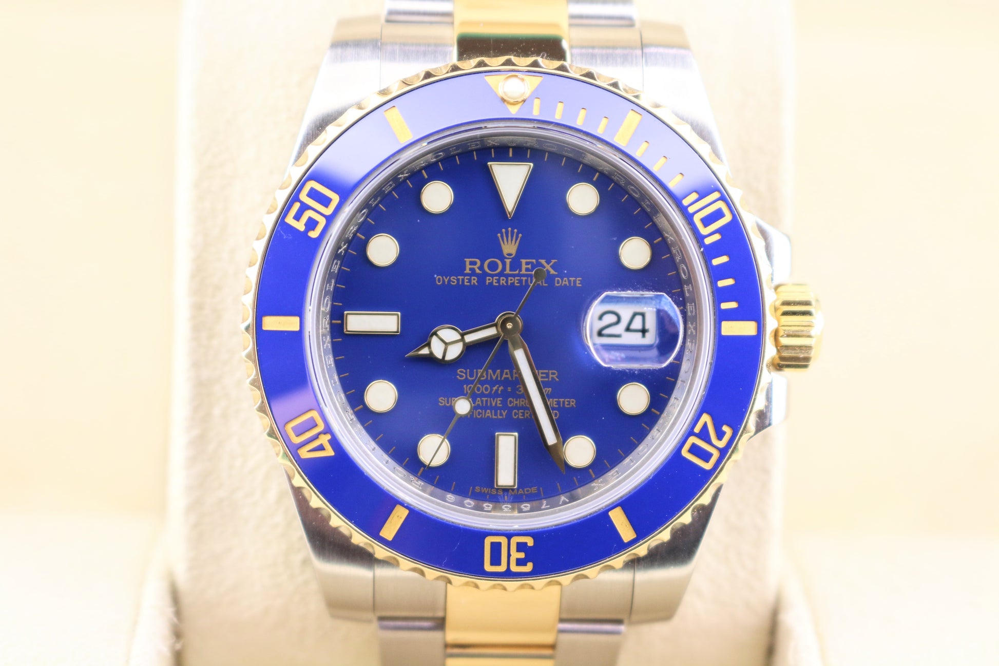 Condition: 9/10- Very minor surface scratches on the bracelet, buckle and bezel. Given its age this watch is as nice as they come. One of the first productions of the 116613 two-tone ceramic submariners.