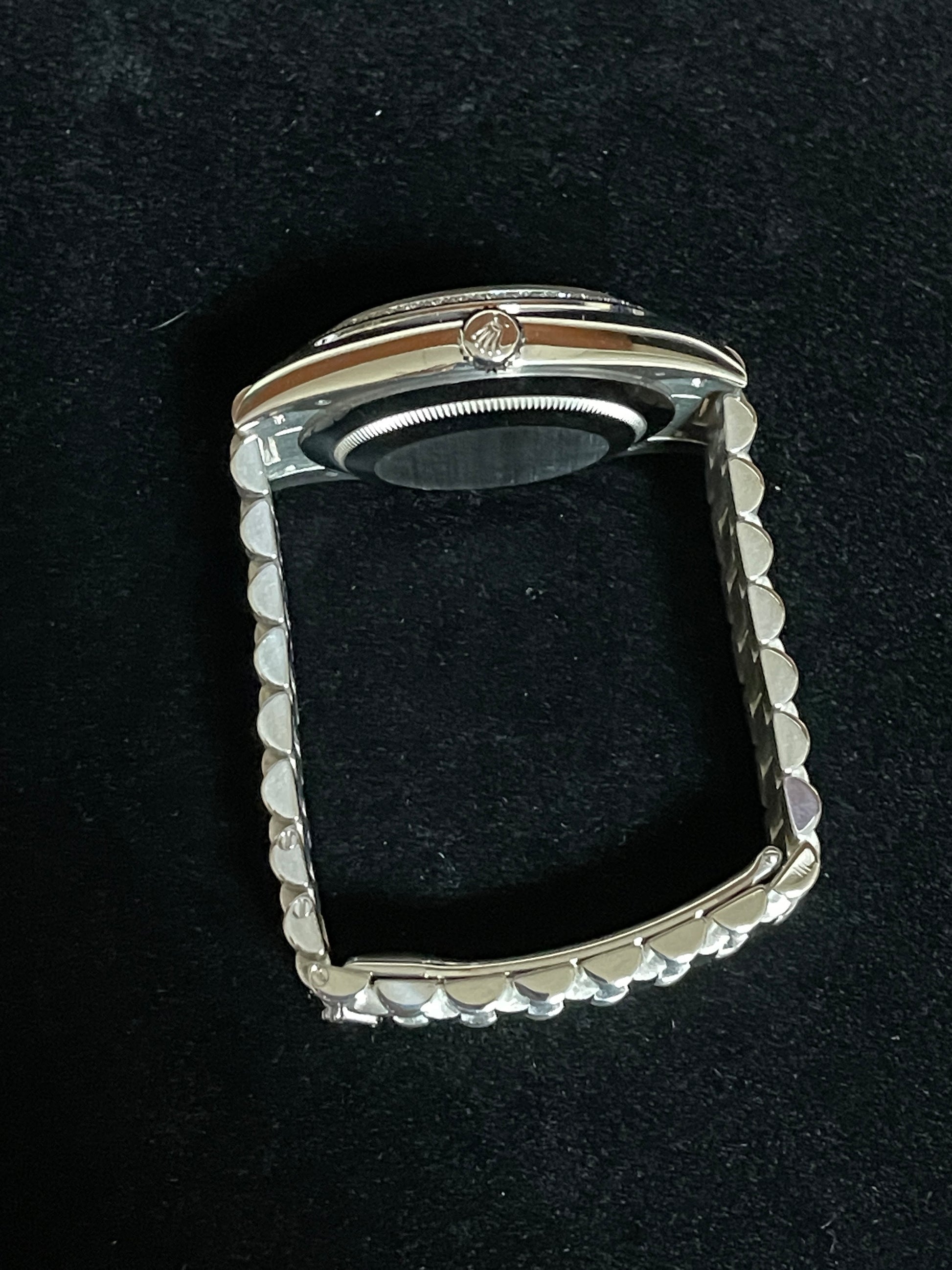 Condition: 9/10- Watch has been polished. Beautiful! Stunning unit with the factory diamond bezel and baguette diamond dial. Solid 18kt gold total weight 201 grams. Retail: $77,950