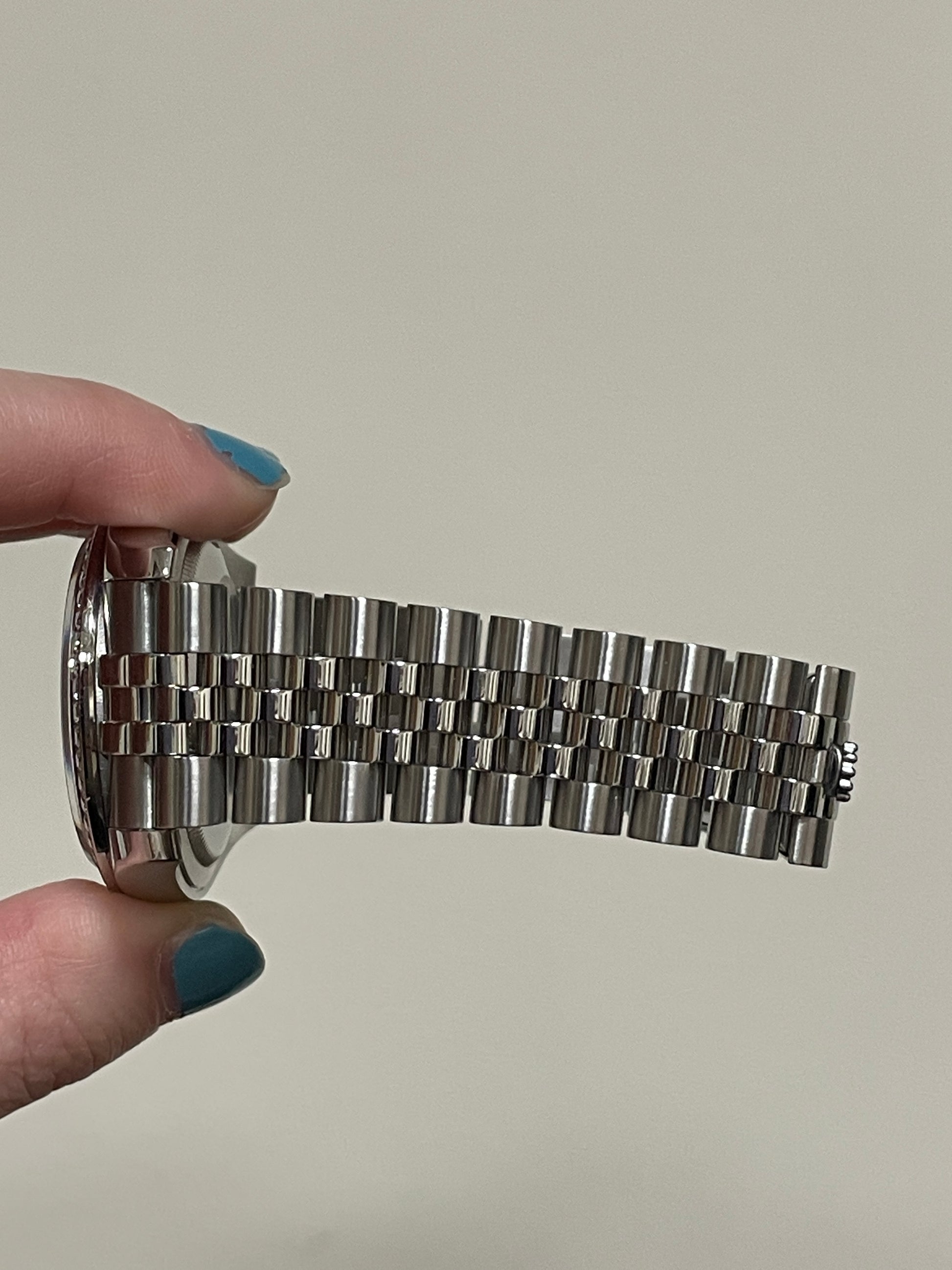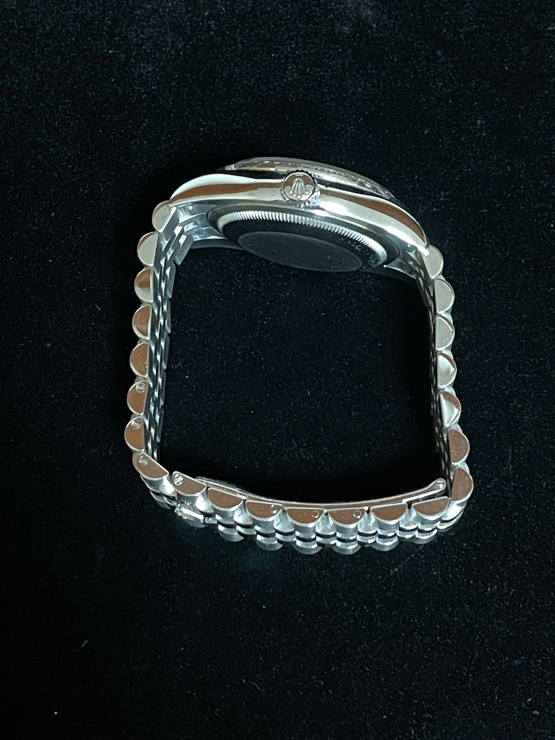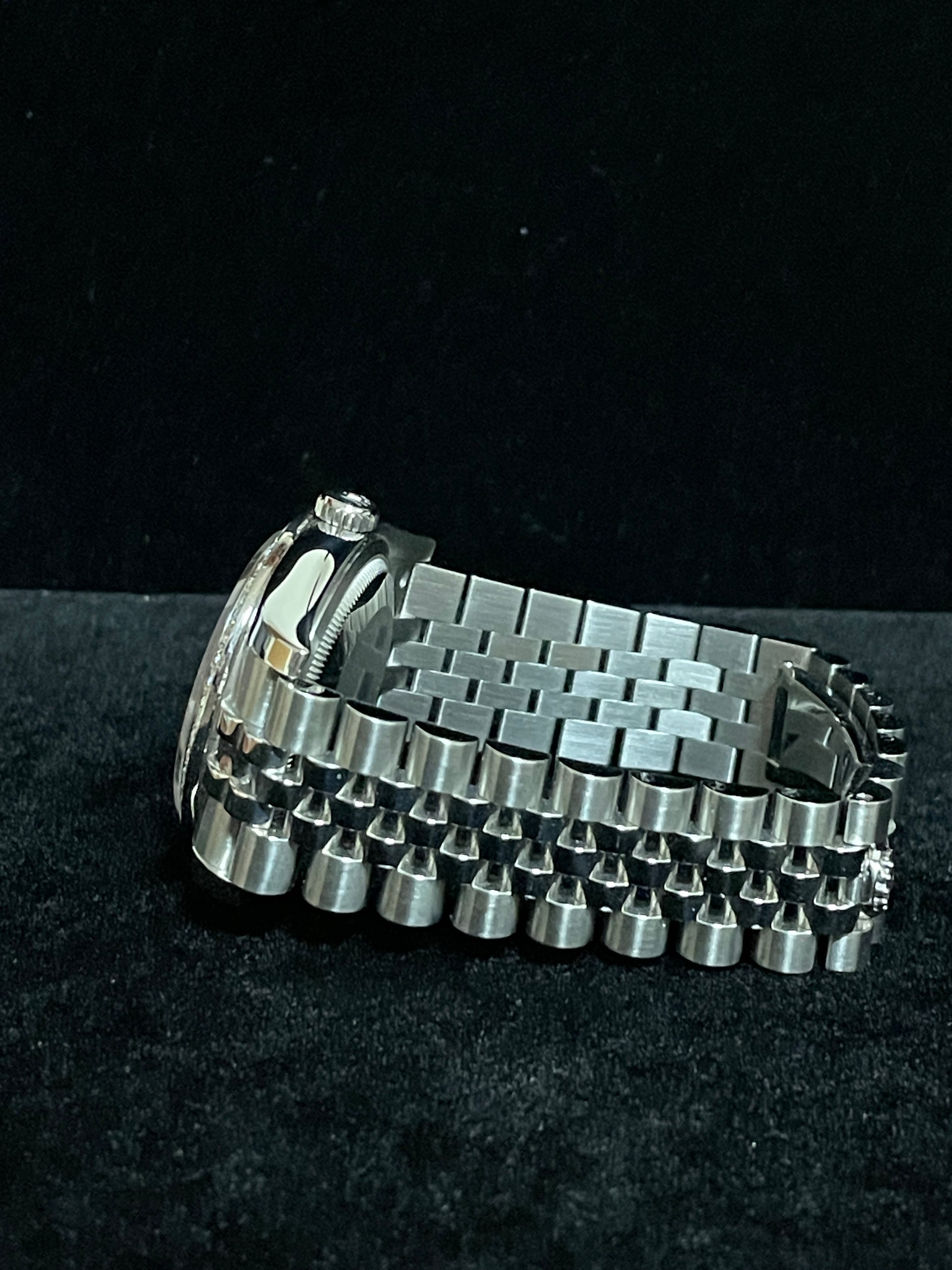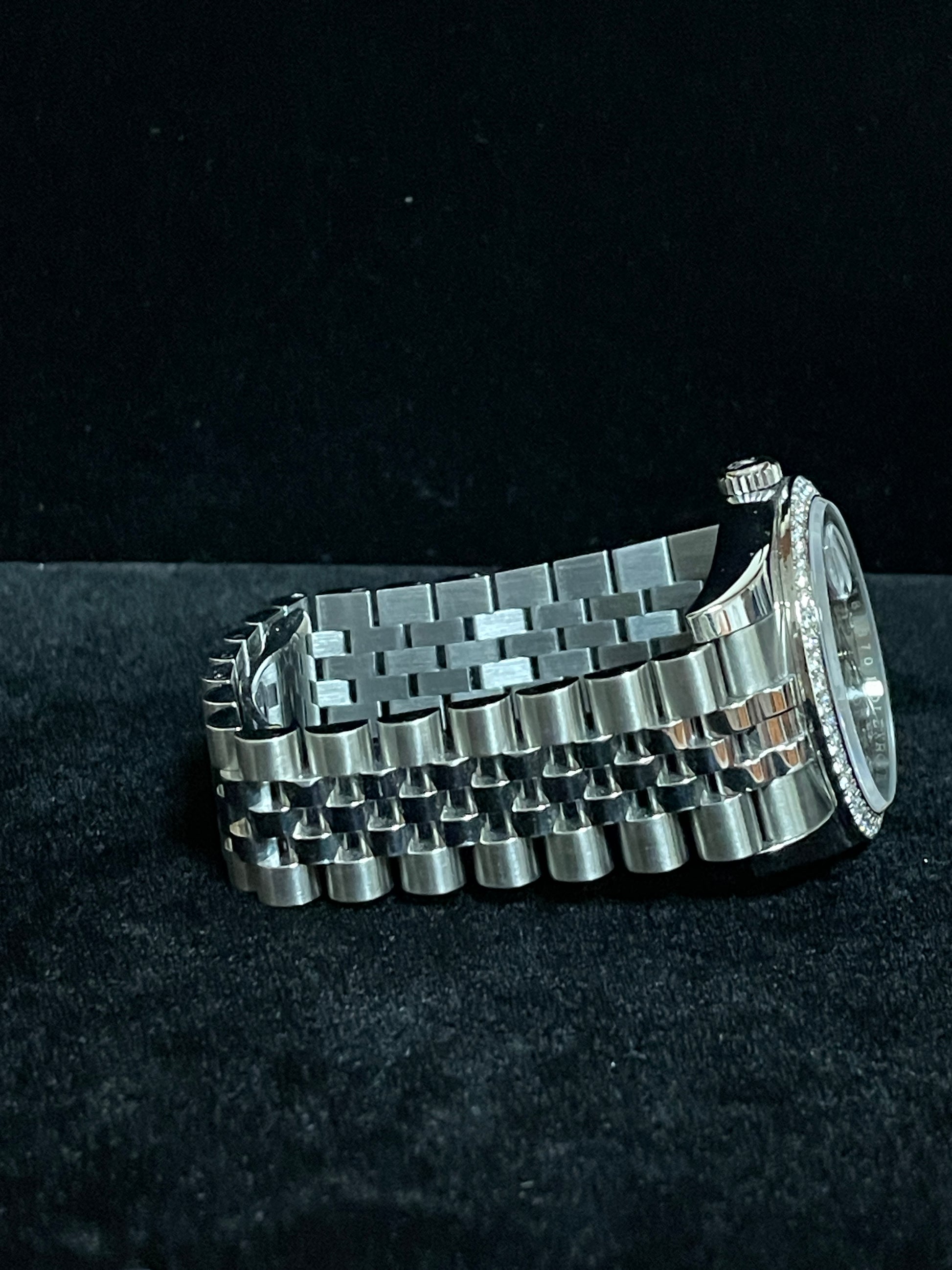 Condition: 9/10- Watch is beautiful and in excellent condition! Stunning factory black mother-of-pearl diamond dial and diamond bezel, one of the sharpest combinations.