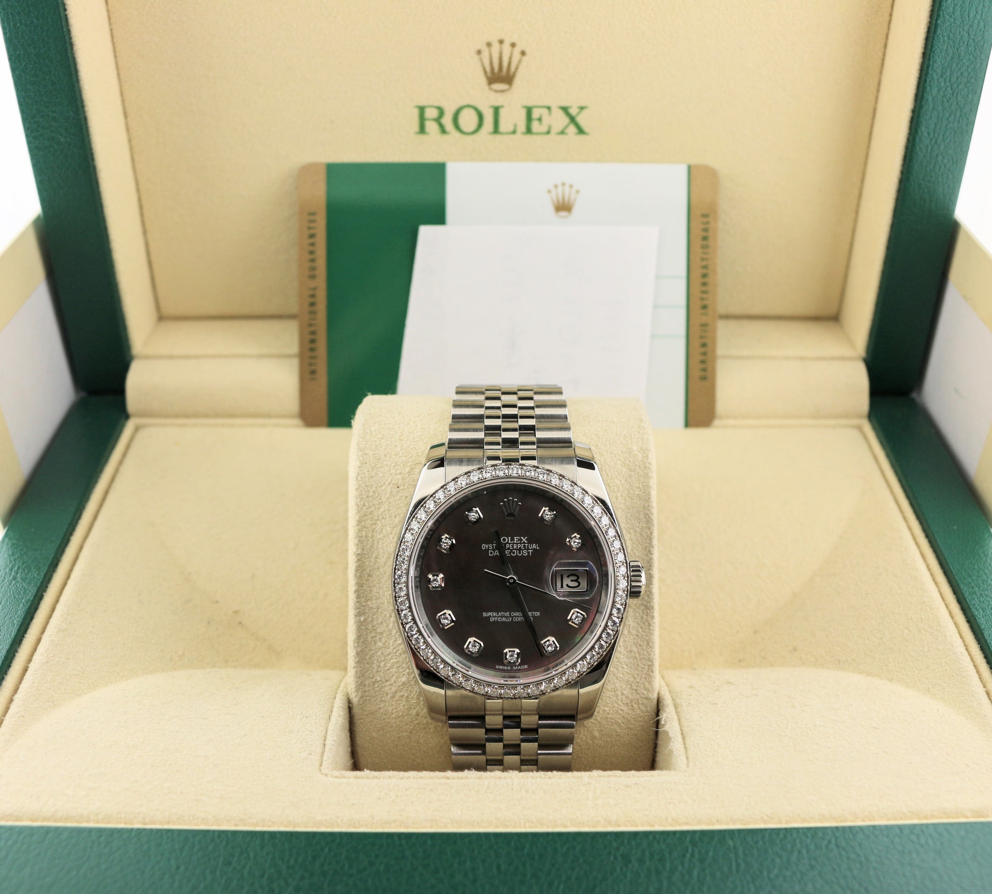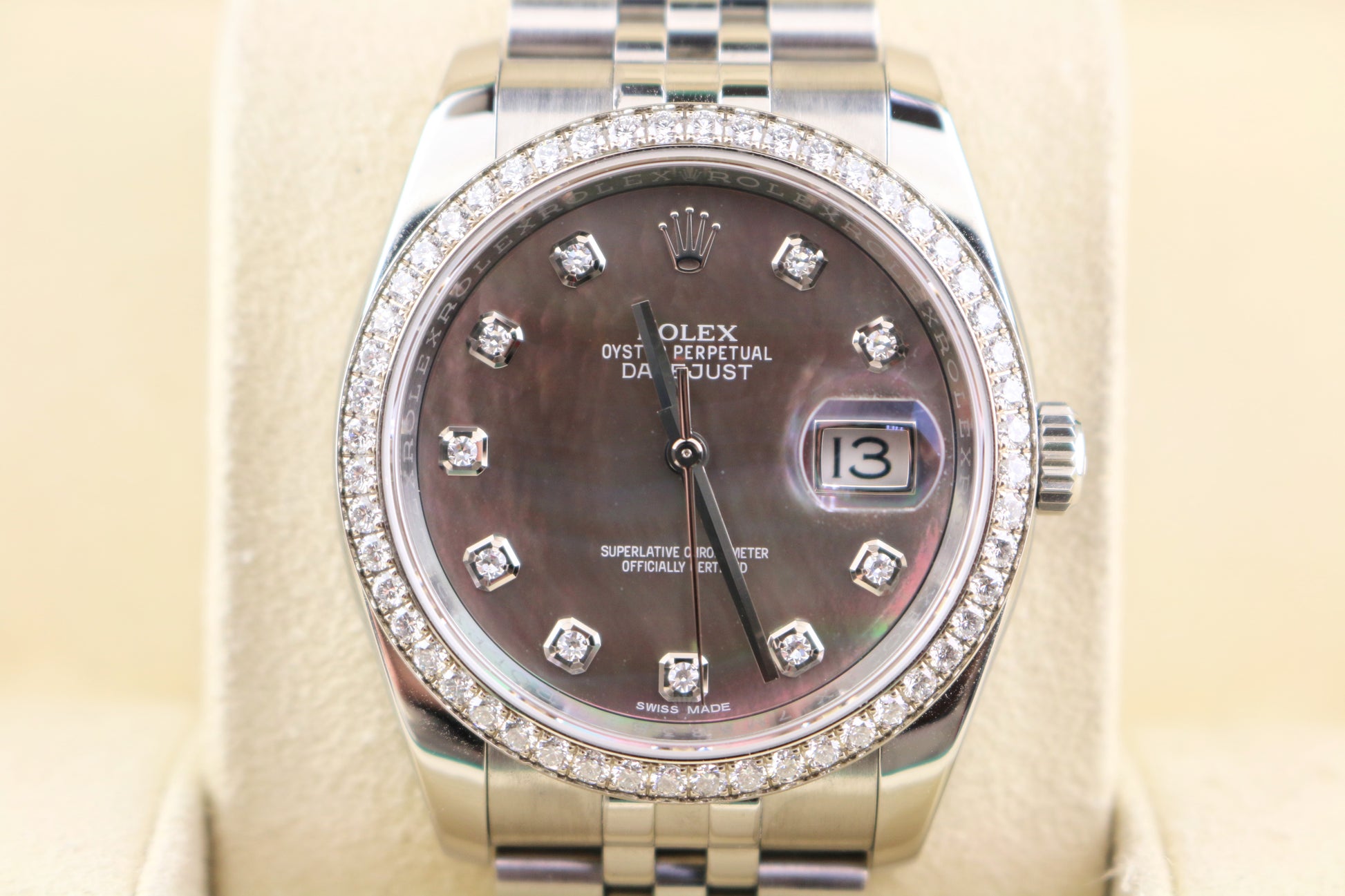 2017 Rolex Datejust 116244 Black MOP Diamond + Bezel SS Jubilee With Papers 36mm