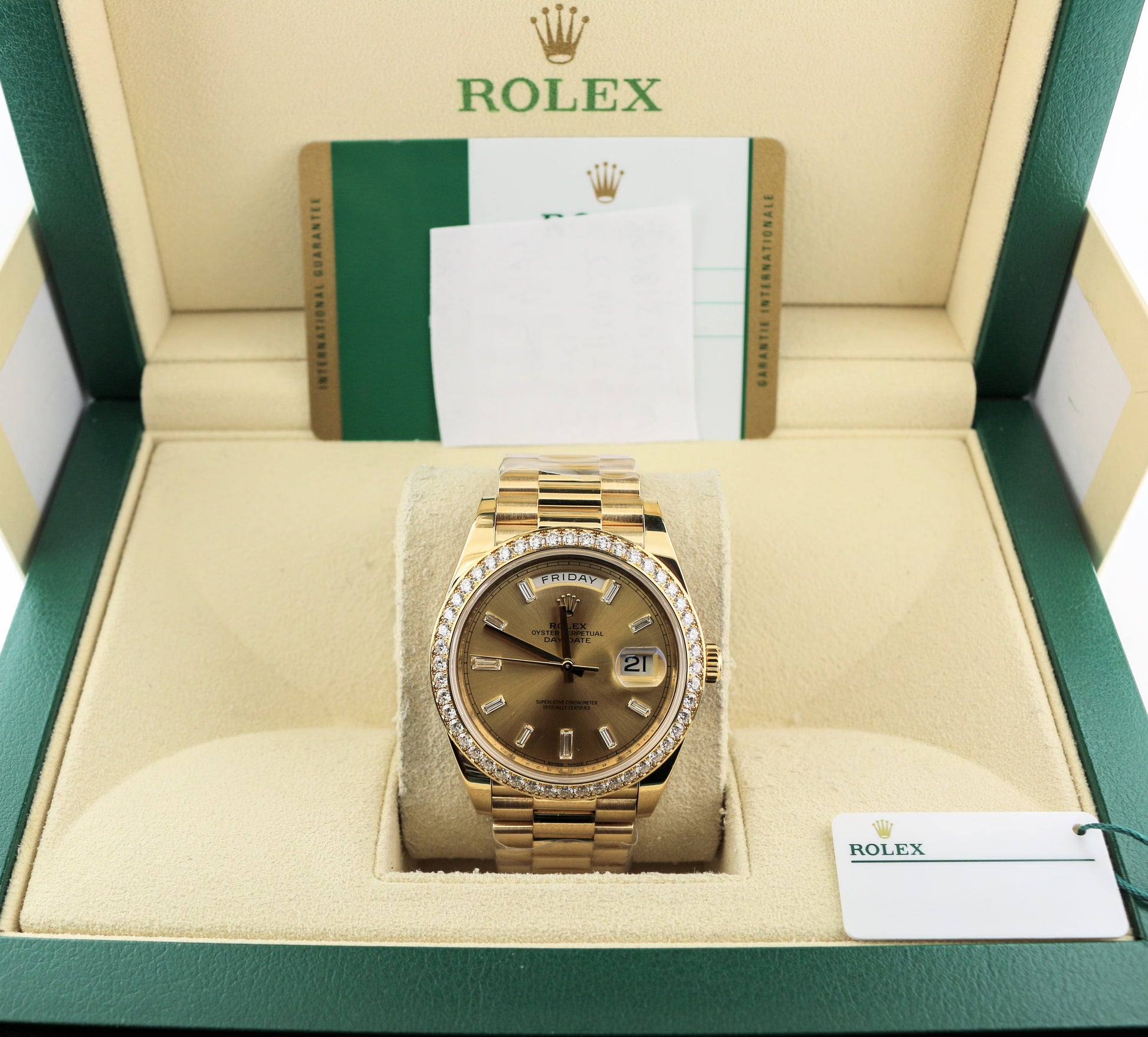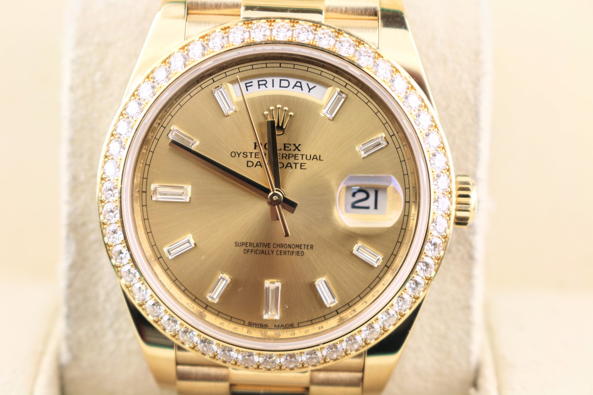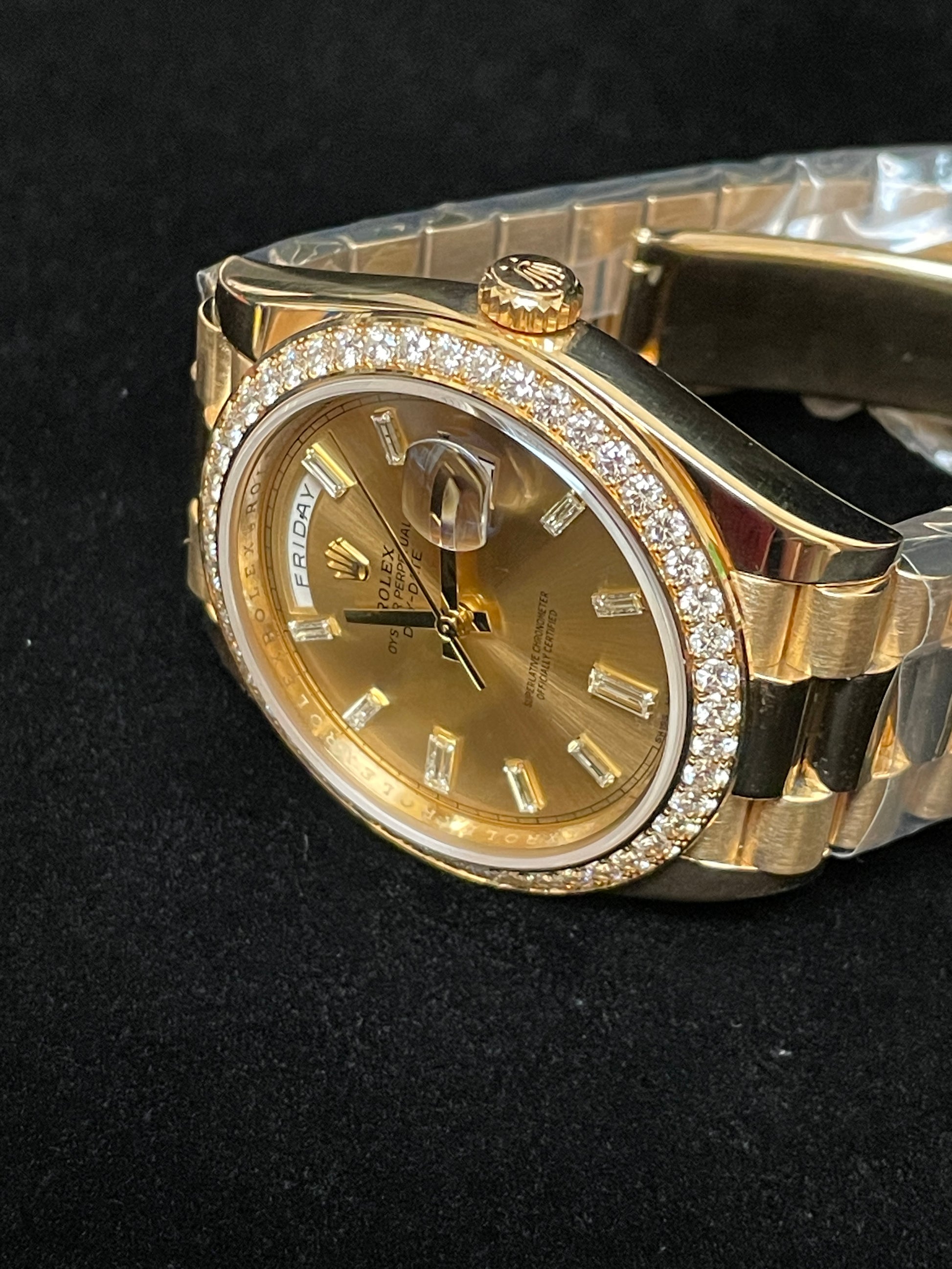 2017 Rolex Day-Date 228348RBR Baguette Diam Bezel 18kt President W/ Papers 40mm