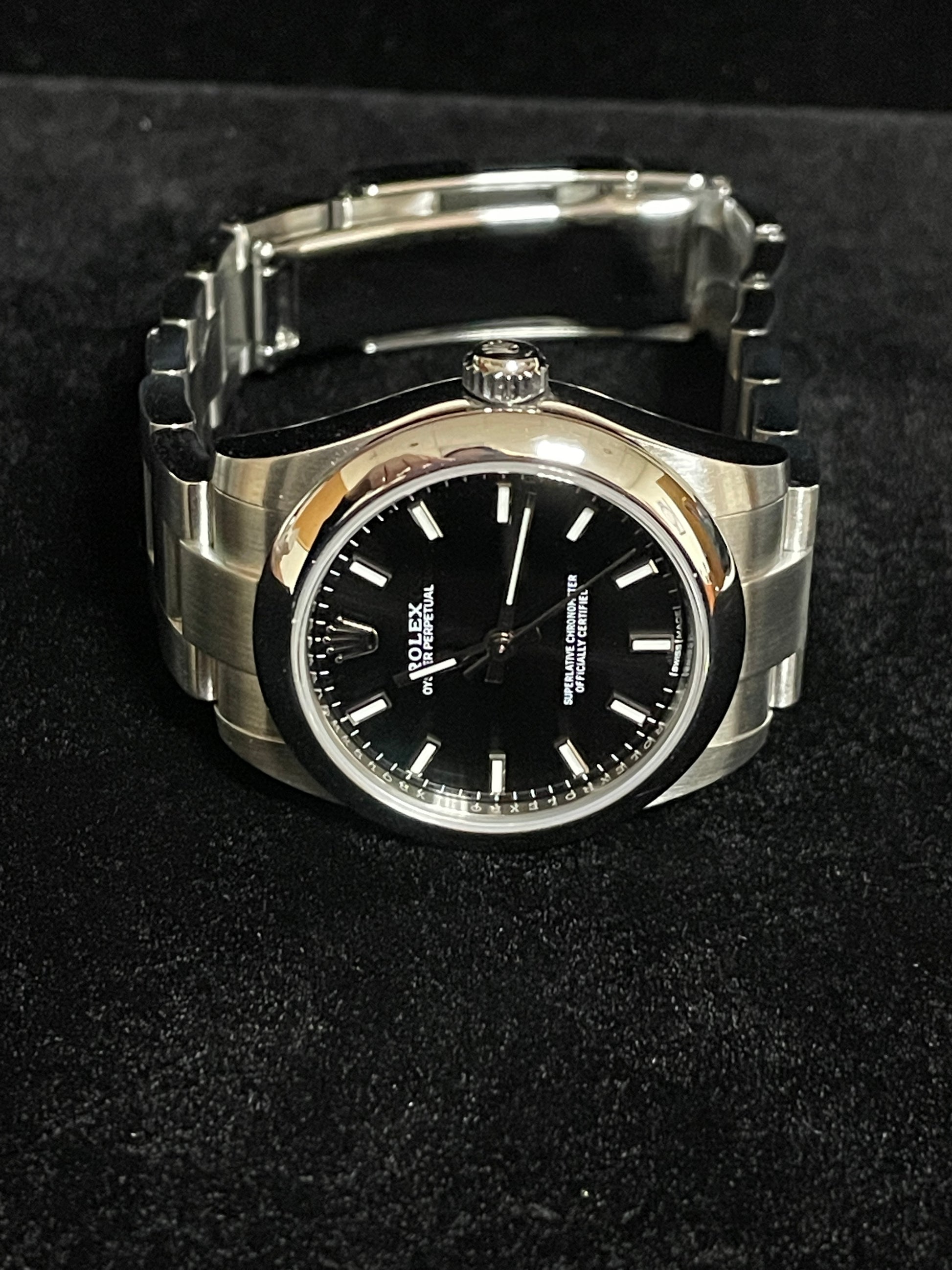 2019 Rolex Oyster Perpetual Midsize 177200 Black Dial SS Oyster With Papers 31mm