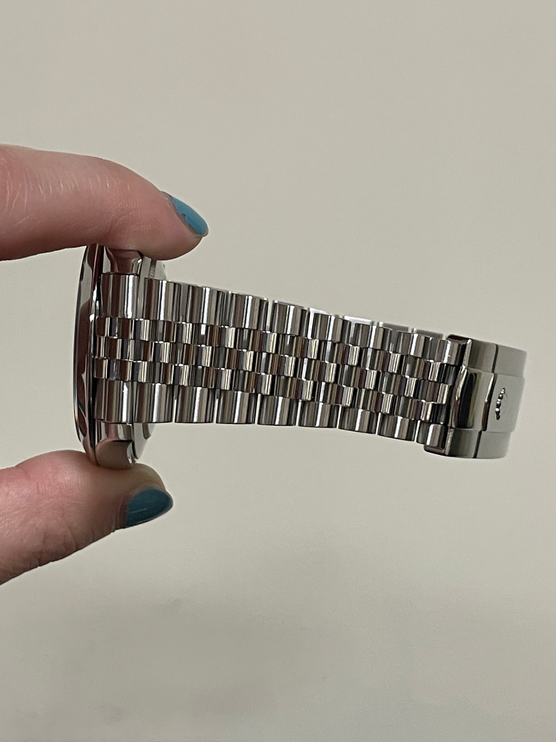 Condition: 9/10- Watch is beautiful. Overall very nice! Sharp condition with a nice tight bracelet.