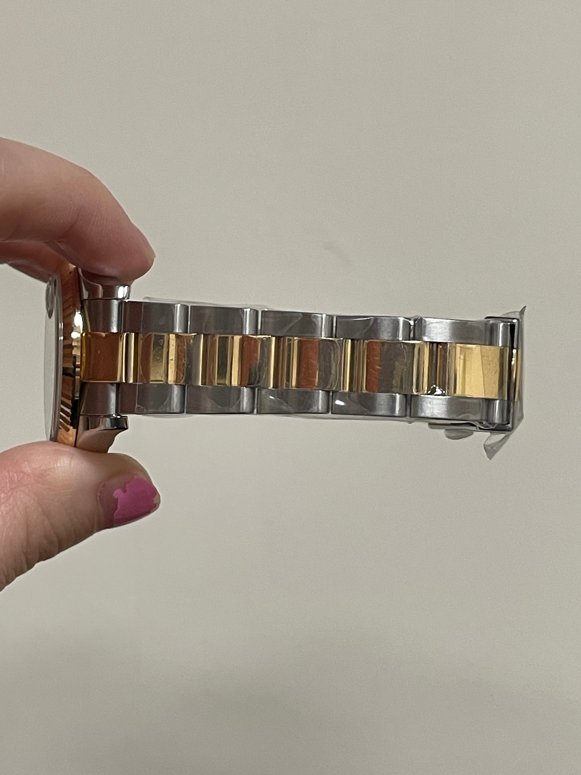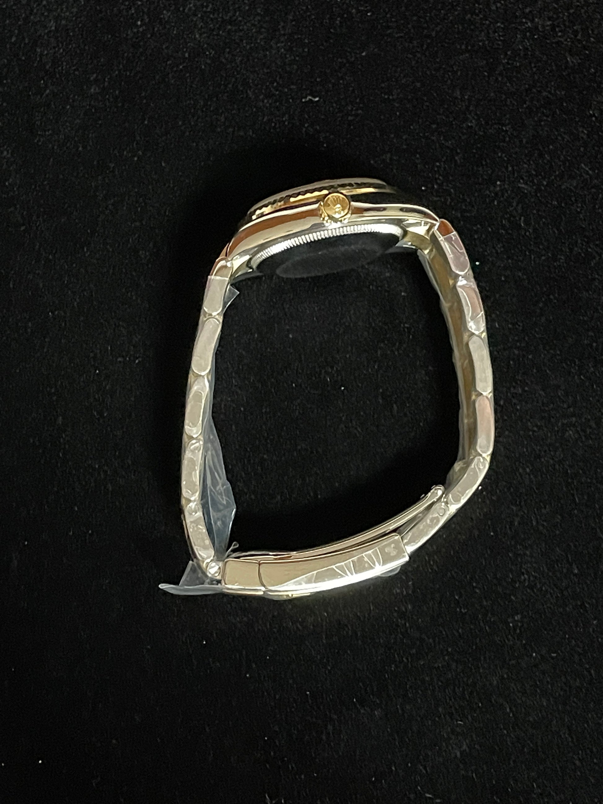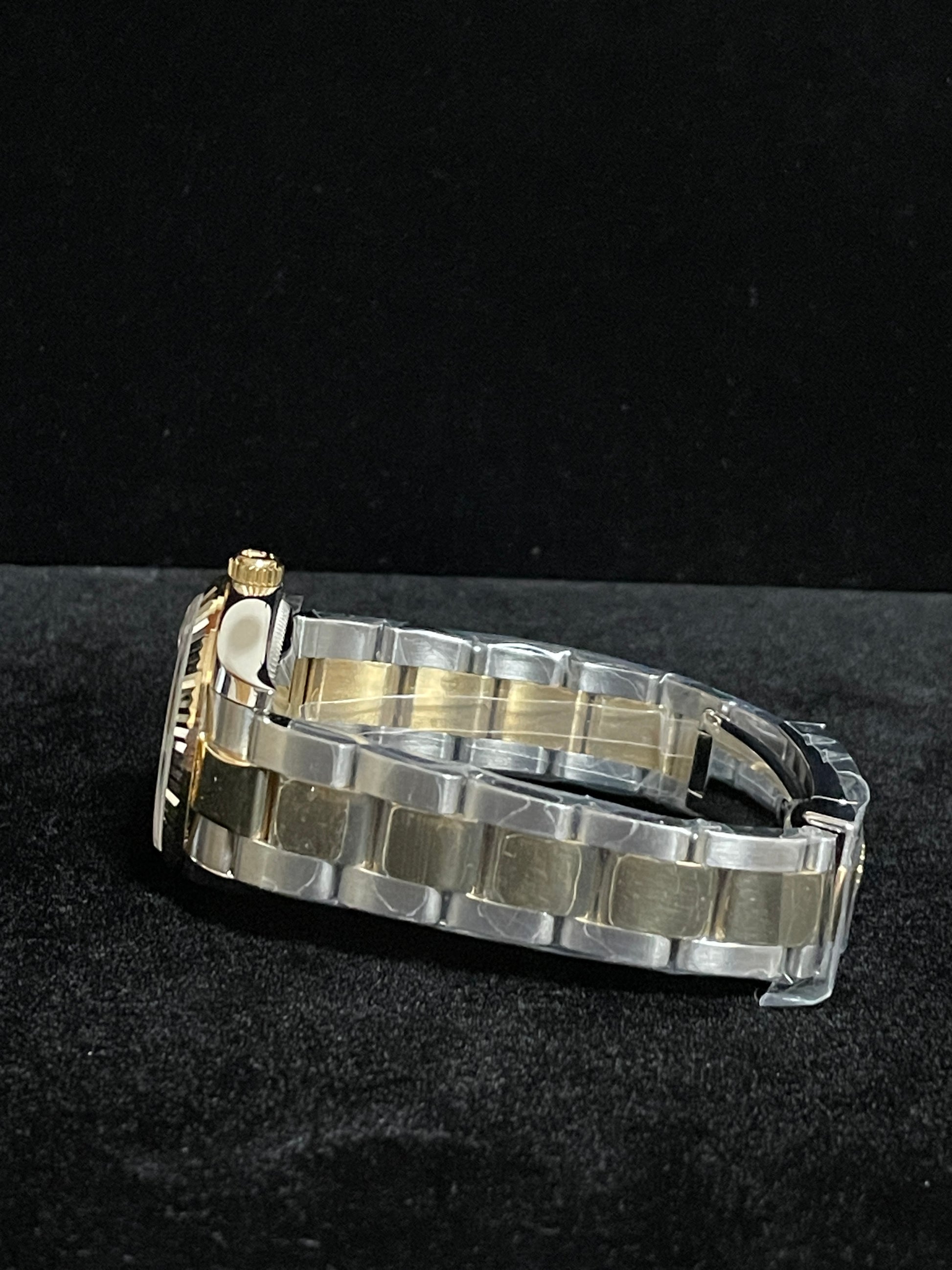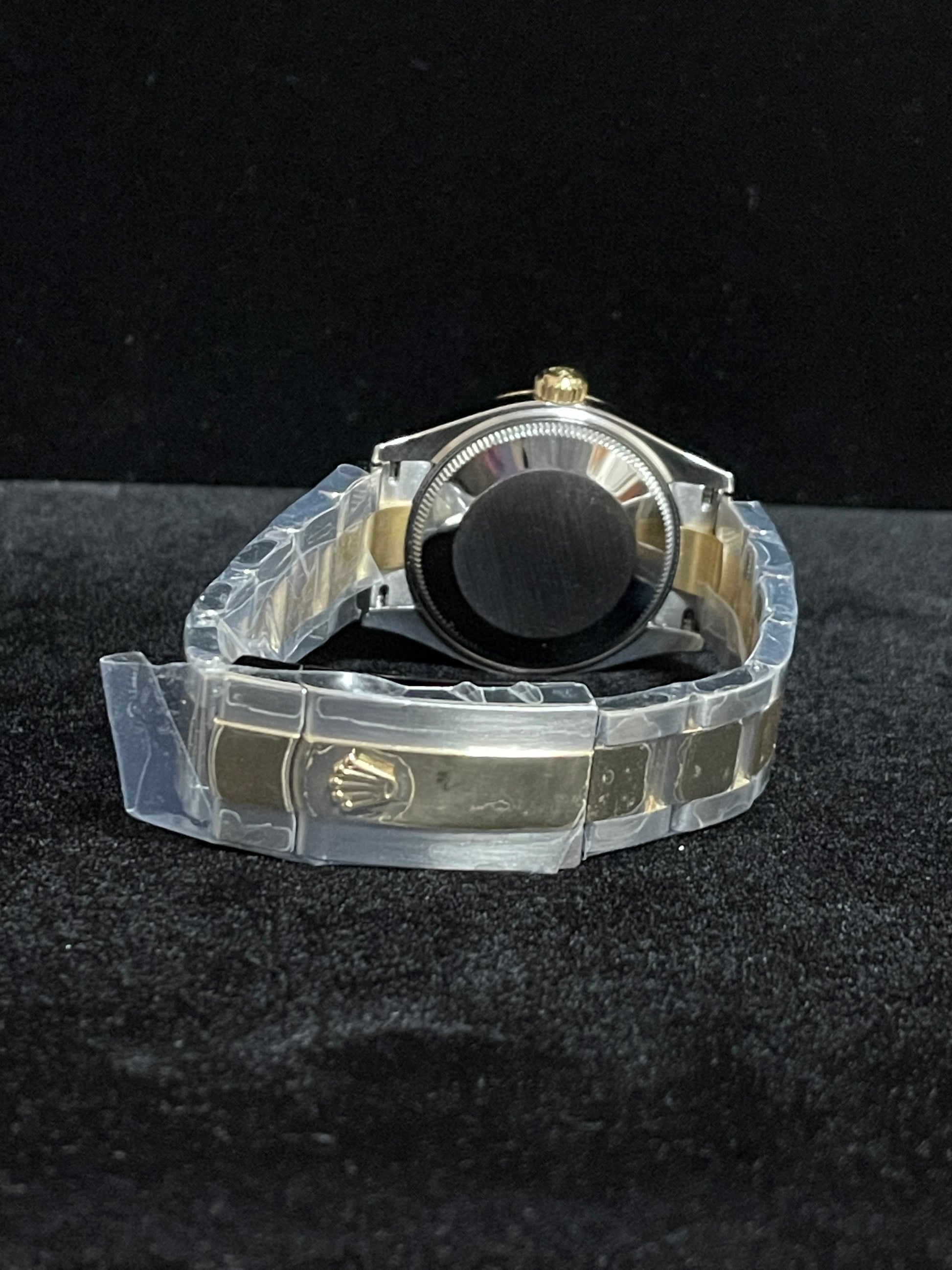 Condition: 9/10- Watch has been polished and is in excellent condition! One of the nicest ladies timepieces, with a stunning Tahitian Mother of Pearl diamond dial equipped on a two-tone 18kt oyster style bracelet and 18kt fluted yellow gold bezel.