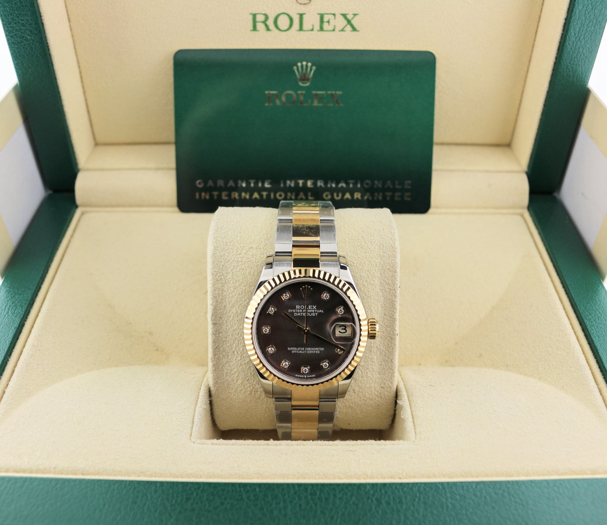 OHA 2020 Rolex Datejust 278273 Midsize Tahitian MOP Diamond TT Oyster W Papers 31mm