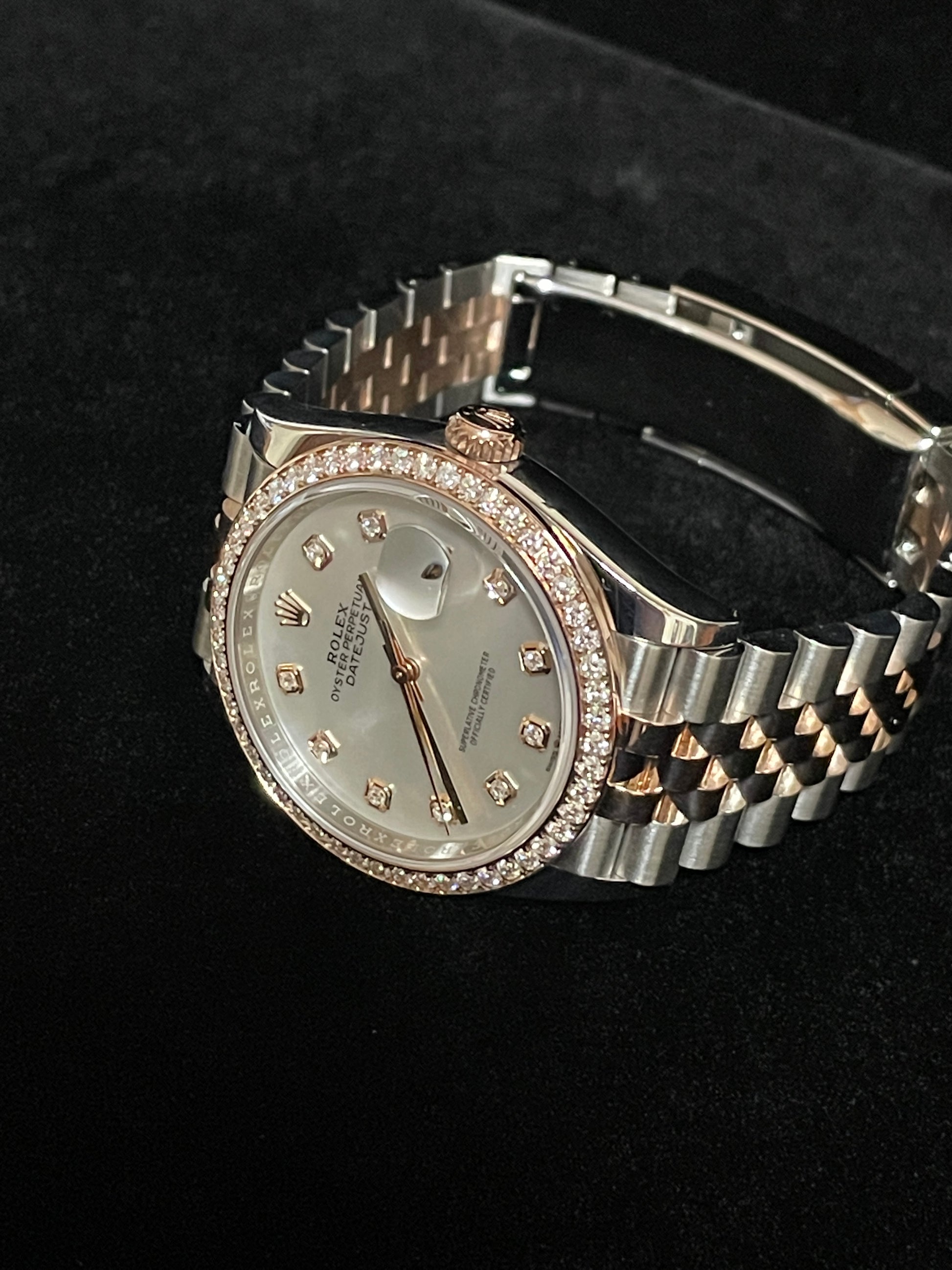 OHA 2023 Rolex Datejust 126281RBR White MOP Diam Dial + Bezel TT Jubilee Papers 36mm