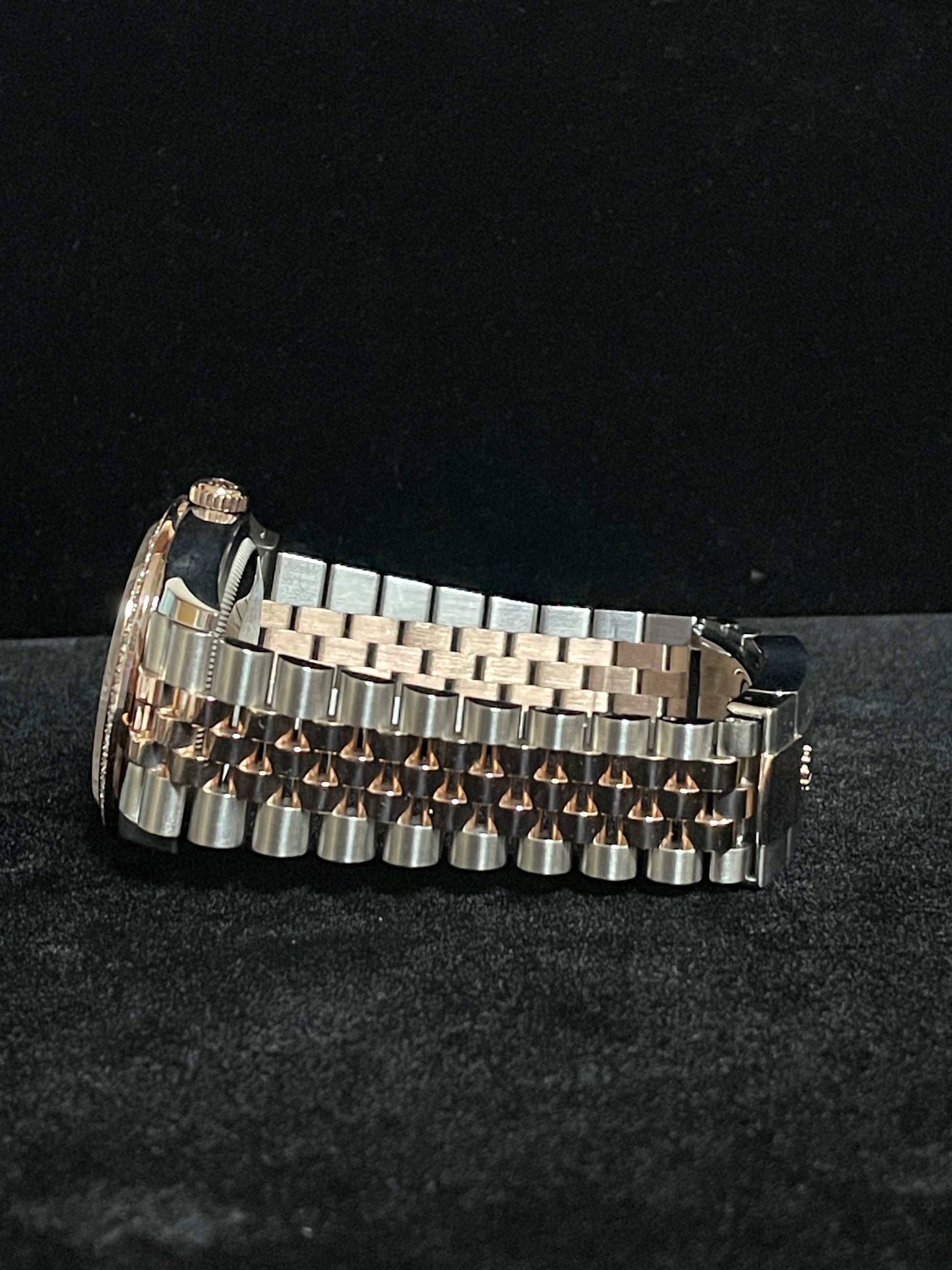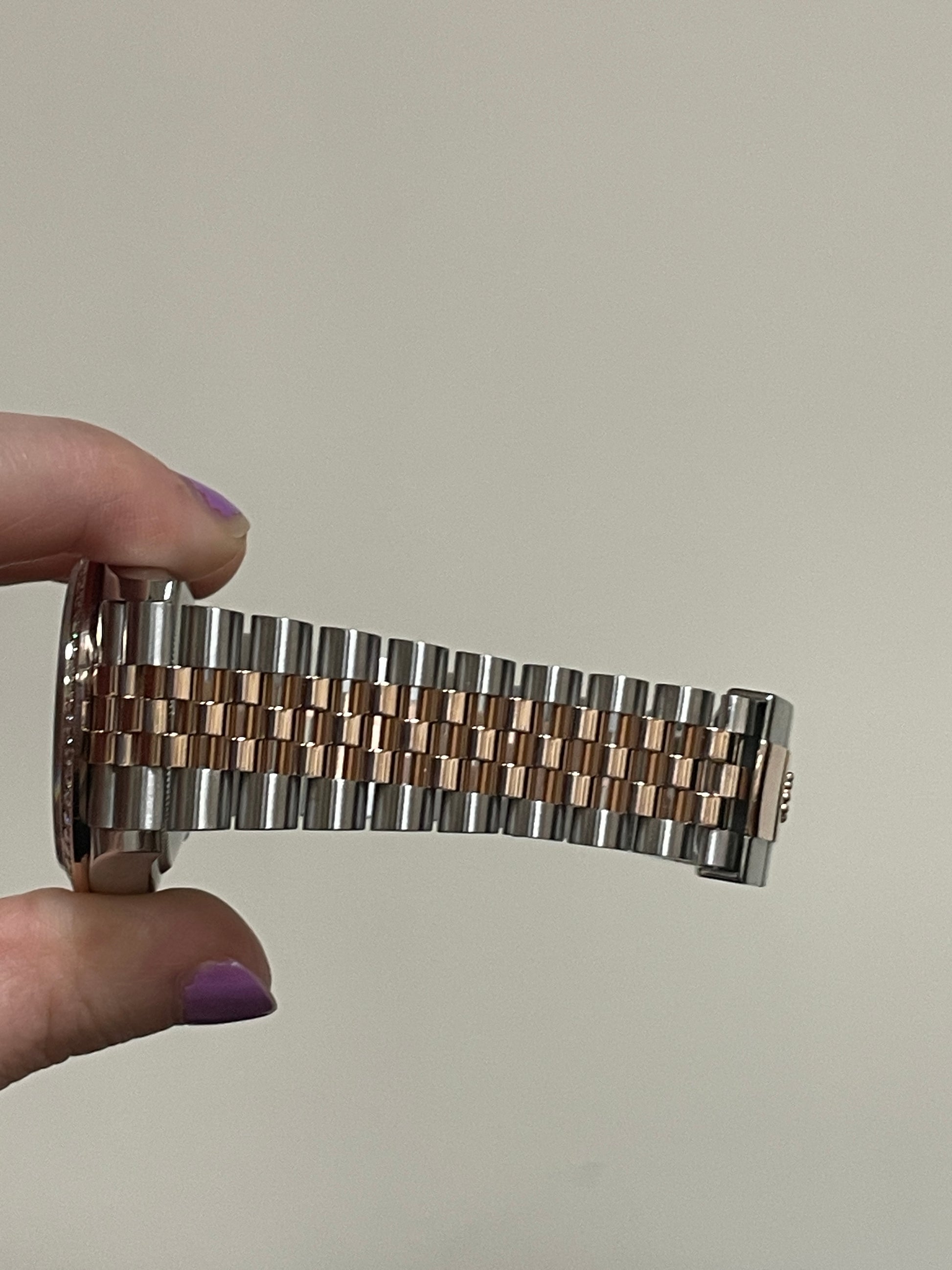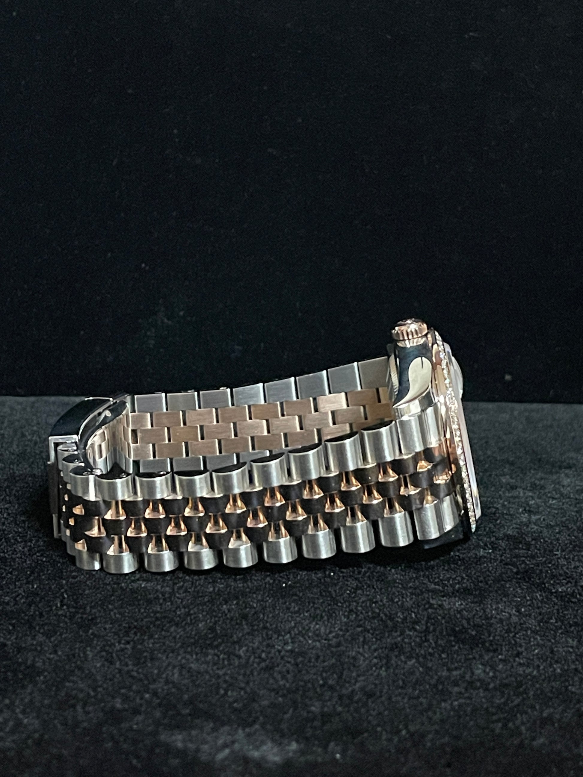 Condition: 9/10- Watch has been polished and is in excellent condition! Beautiful! Stunning timepiece factory diamond bezel and MOP diamond dial. Equipped with a two-tone rose gold jubilee bracelet.