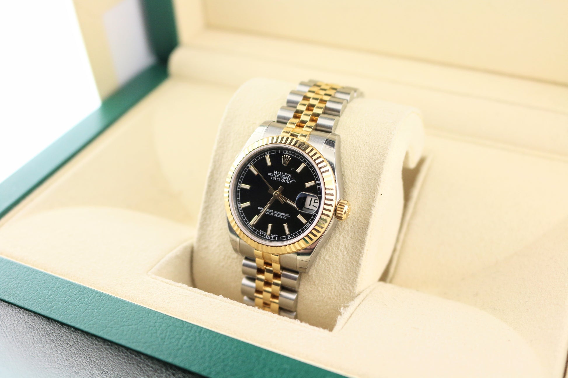 NOS 2013 Rolex Midsize Datejust 178273 Black Dial Stickered TT 18kt Jubilee 31mm